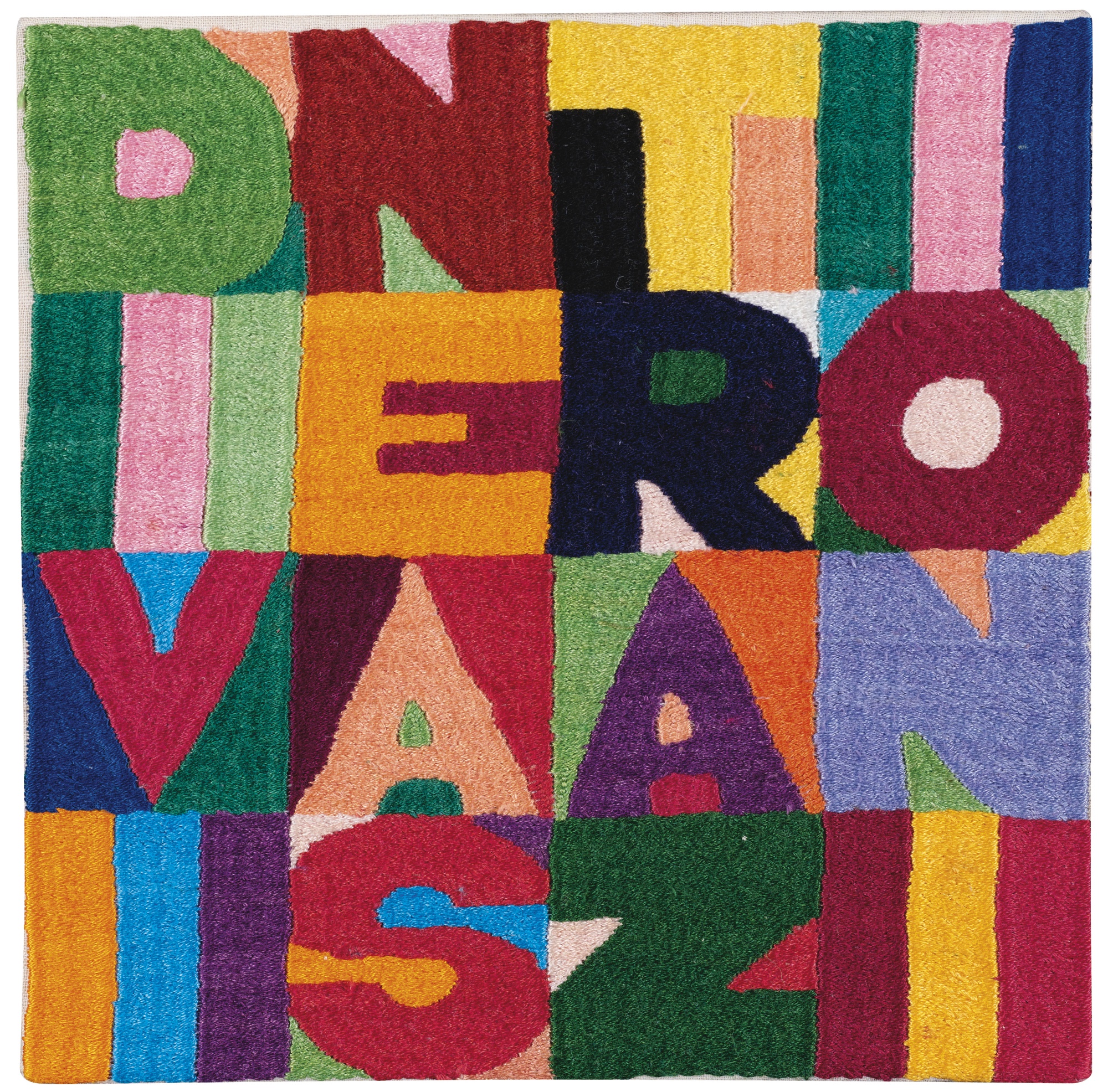 ALIGHIERO BOETTI 1940 - 1994 DIVINE ASTRAZIONI signed on the reverse, embroidery. Executed in 1989 firmato sul risvolto arazzo cm 17,5x17,5 Eseguito nel 1989 Opera registrata presso l'Archivio Alighiero Boetti , Roma, con il n. 7304 L'opera è accompagnata da certificato su fotografia rilasciato dall'Archivio Alighiero Boetti, Roma
