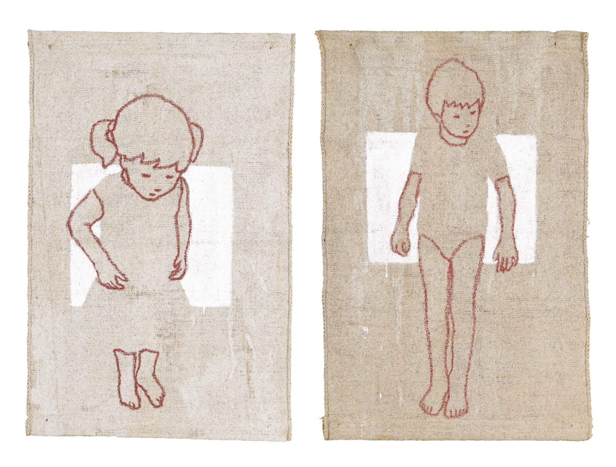 VALERIO BERRUTI N. 1977 NON NEL MIO NOME signed, titled and dated 2007 on the reverse, fresco on jute; dyptic firmato, intitolato e datato 2007 sul retro affresco su juta; dittico cm 91x60; ciascuno PROVENANCE Galleria Ermanno Tedeschi, Torino Ivi acquistato dall'attuale proprietario
