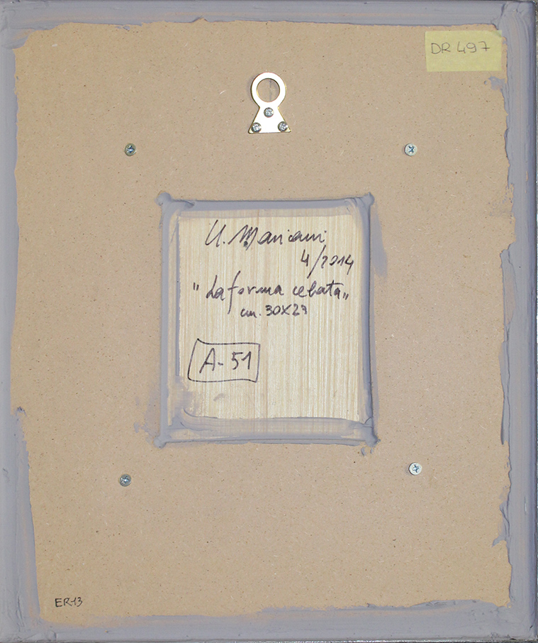 UMBERTO MARIANI, "La forma celata", 2014, Piombo dipinto, Dim. 23x30, Al verso: firma, titolo, misure, anno, Opera con autentica su foto dell'artista