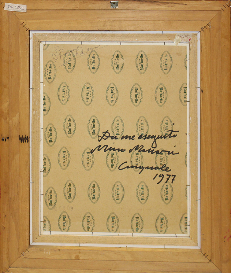 MINO MACCARI, 1977, Olio su tela cartonata, Dim. 49x38, Al fronte: firmato in basso a destra, Al verso: firma e data