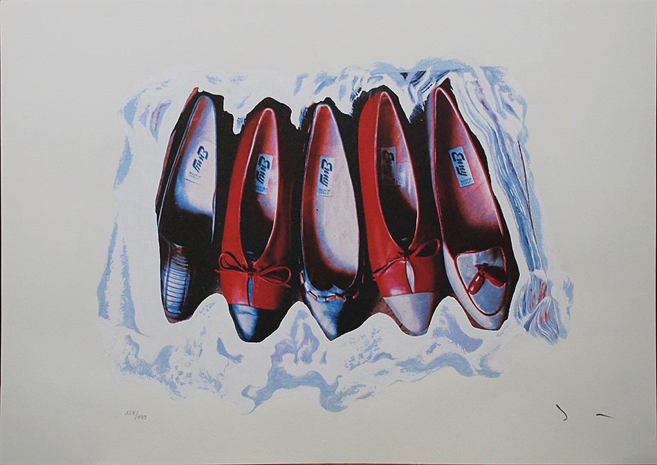 Mario schifano, Senza titolo, Serigrafia materica a smalto su carta, Dim. 50x70, Al fronte: esemplare n° 129/199 in basso a sinistra e firmato in basso a destra, Senza cornice
