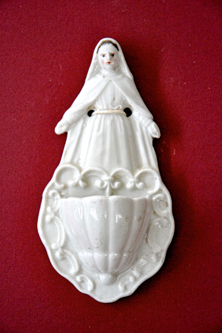Acquasantiera in porcellana con suor scolastica