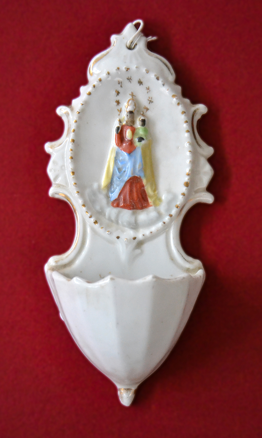 Acquasantiera in porcellana con Madonna nera di Montenero