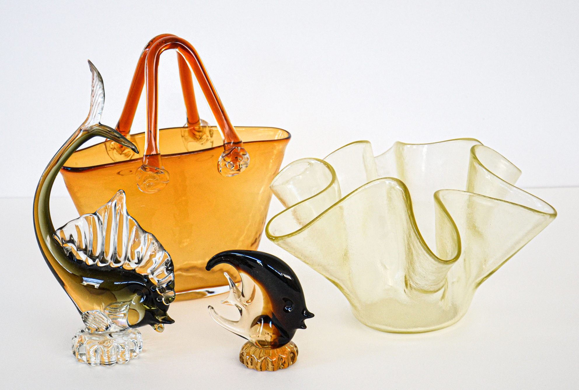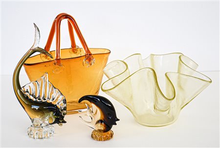 Lotto composto da n° 4 sculture in vetro artistico italiano degli anni '70.