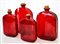 Lotto composto da n° 4 bottiglie in vetro soffiato rosso con intarsi alla base sui quattro lati.