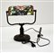 Lampada da tavolo con paralume in vetro colorato in stile Tiffany, realizzato con saldature a mano in zinco, base in ghisa e struttura in ferro smaltato