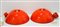 Lotto composto da n. 02 lampade a sospensione realizzate in metallo lucido rosso e bordo in gomma (mancante) il tappo a soffitto è in metallo e plastica rossa con cavo bianco. Ideata dal maestro Achille Castiglioni per Floss nel 1962.
