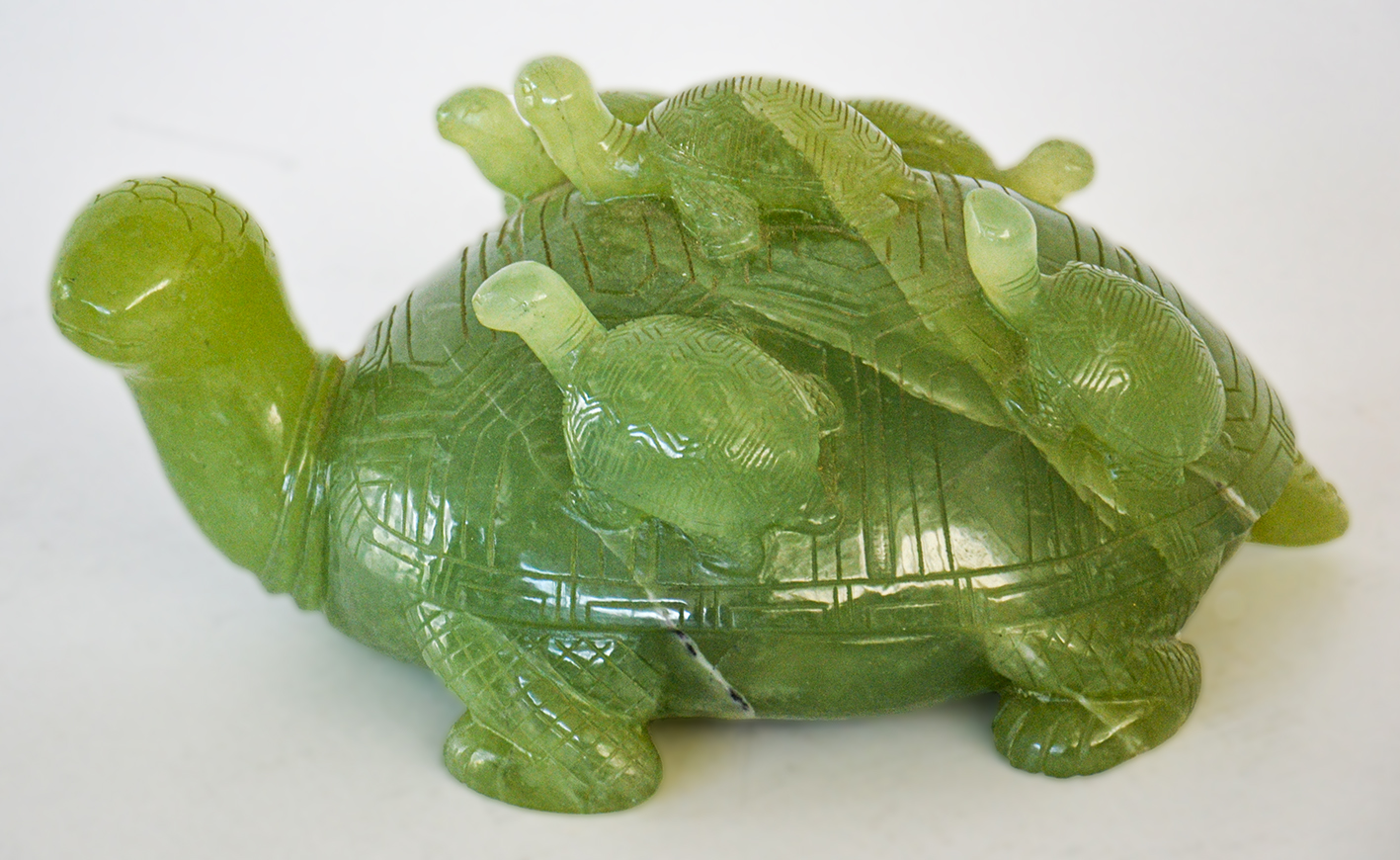 Tartaruga in giada con cinque tartarughe sul carapace.