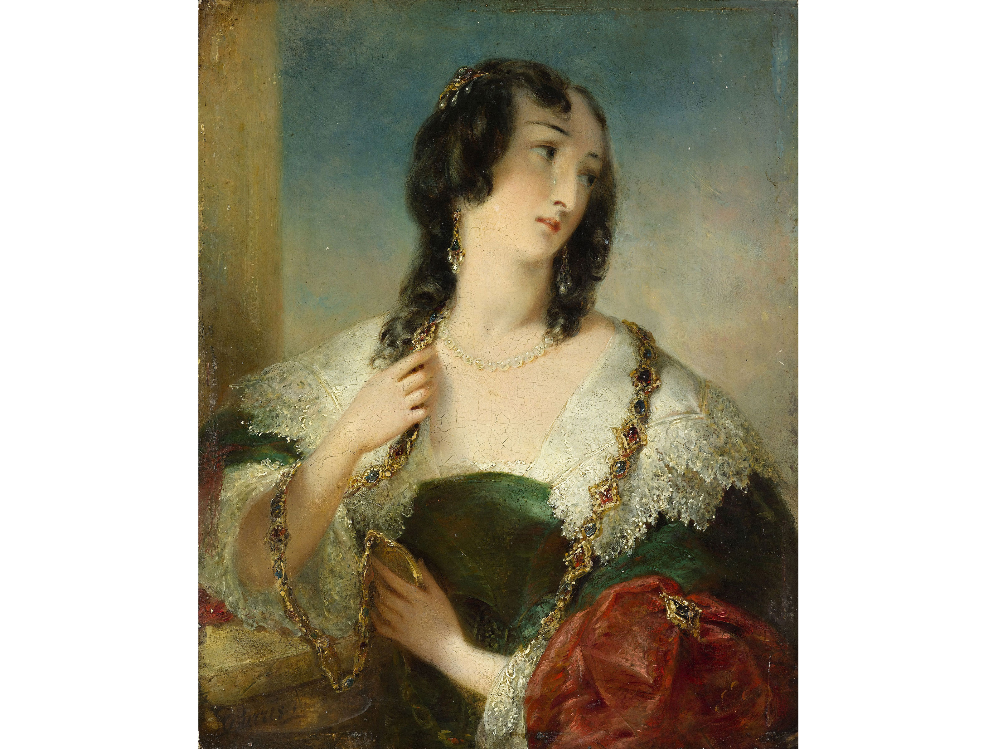 Edmund Thomas Parris (1793-1873) Ritratto di dama Olio su tavoletta Firmato Misure 27x21,5 cm