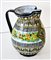 Brocca in terracotta decorata a mano con smalto policromo a campiture alternate con motivi floreali e greche geometriche.