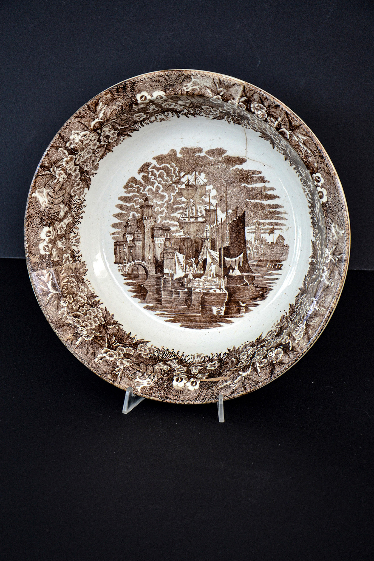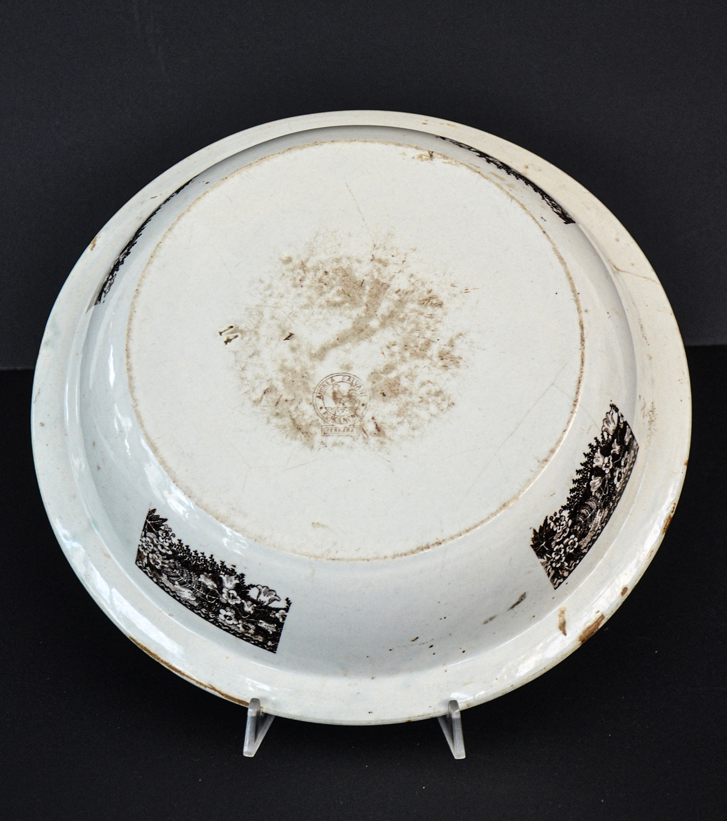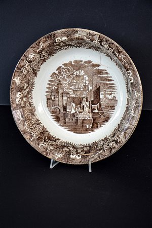Grande ciotola in ceramica riproducente il disegno "Ferrara", tipo 1 (cioè la versione più antica) in bruno.