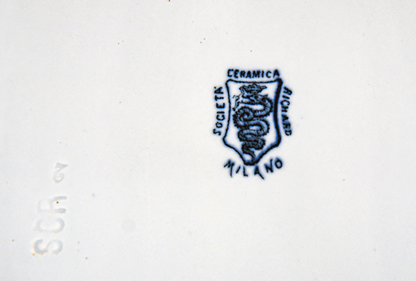 Al retro di ogni stoviglia è presente il marchio: "SCR Società ceramica Richard Milano".