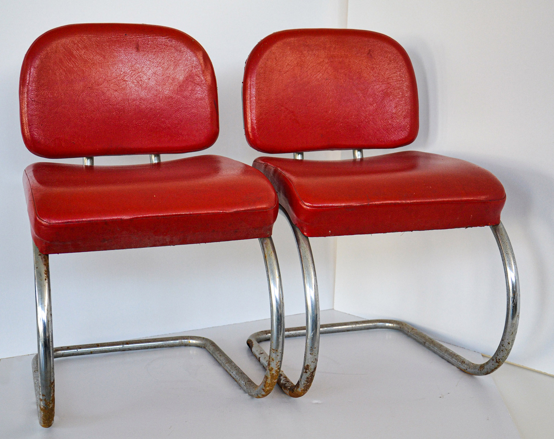 realizzate in tubolare di acciaio cromato, seduta e schienale in ecopelle di colore rosso.
