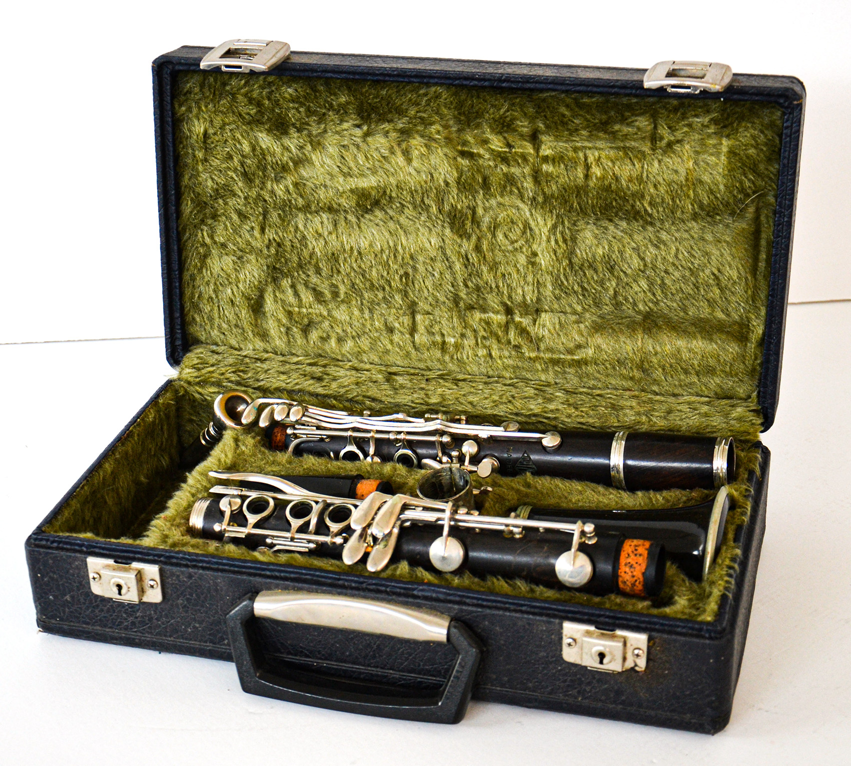 Clarino vintage porta la scritta Cariban Madebas, completo di custodia originale.