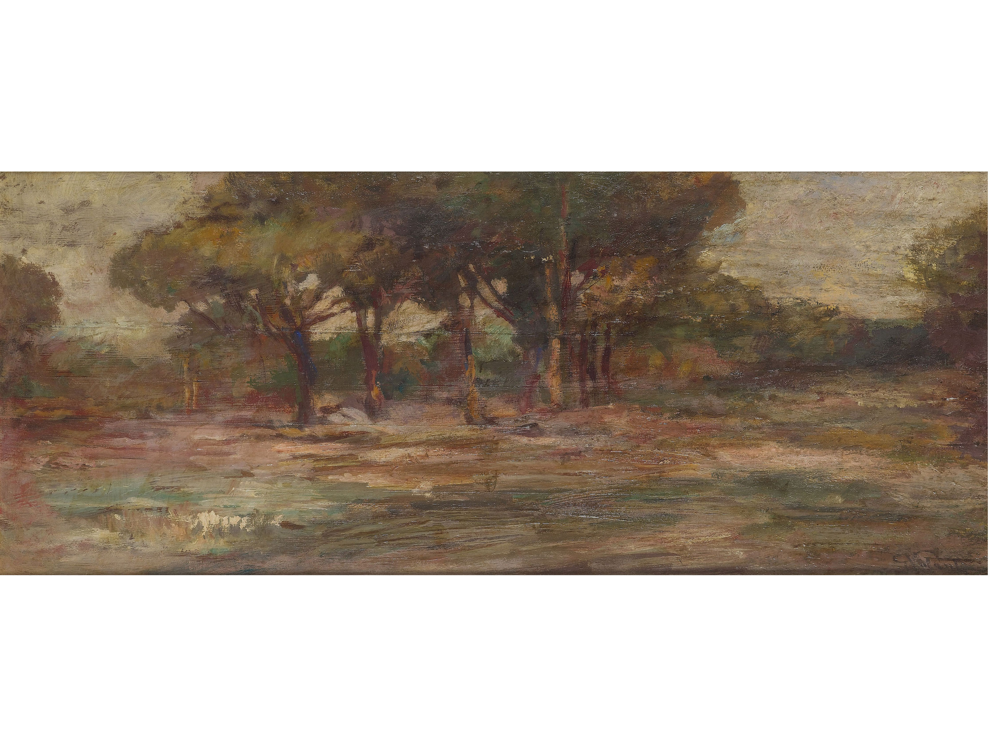 Giuseppe Palanti (Milano, 1881–1946) Pianura lombarda Olio su tavoletta Firmato Misure 21,5x52 cm