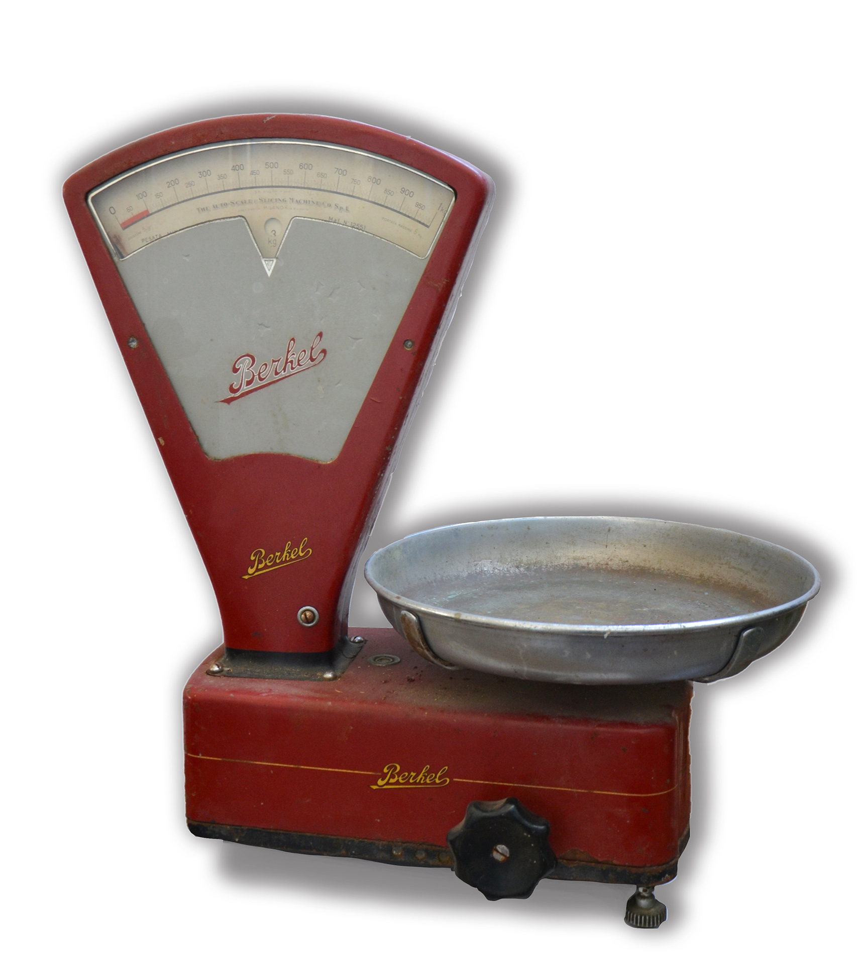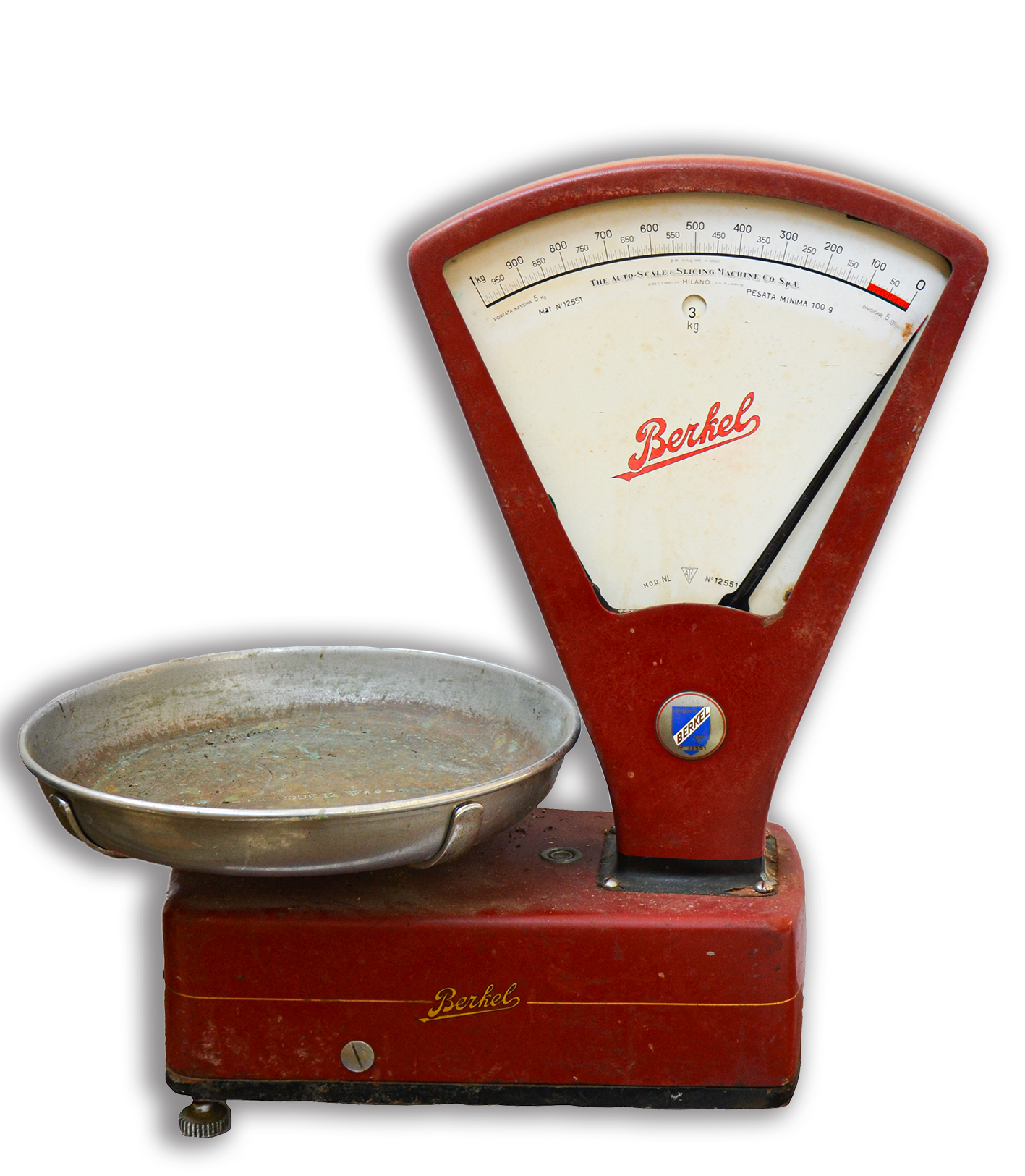 Bilancia Berkel ad un piatto modello NL N° 12551 colore rosso originale, scala 100g a 5 Kg.