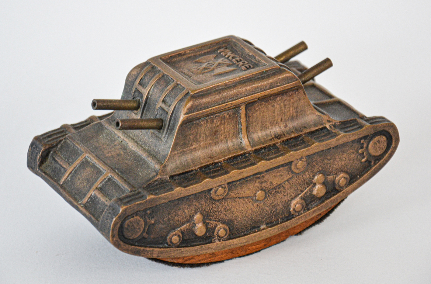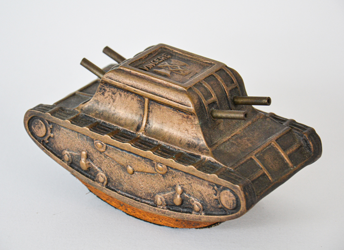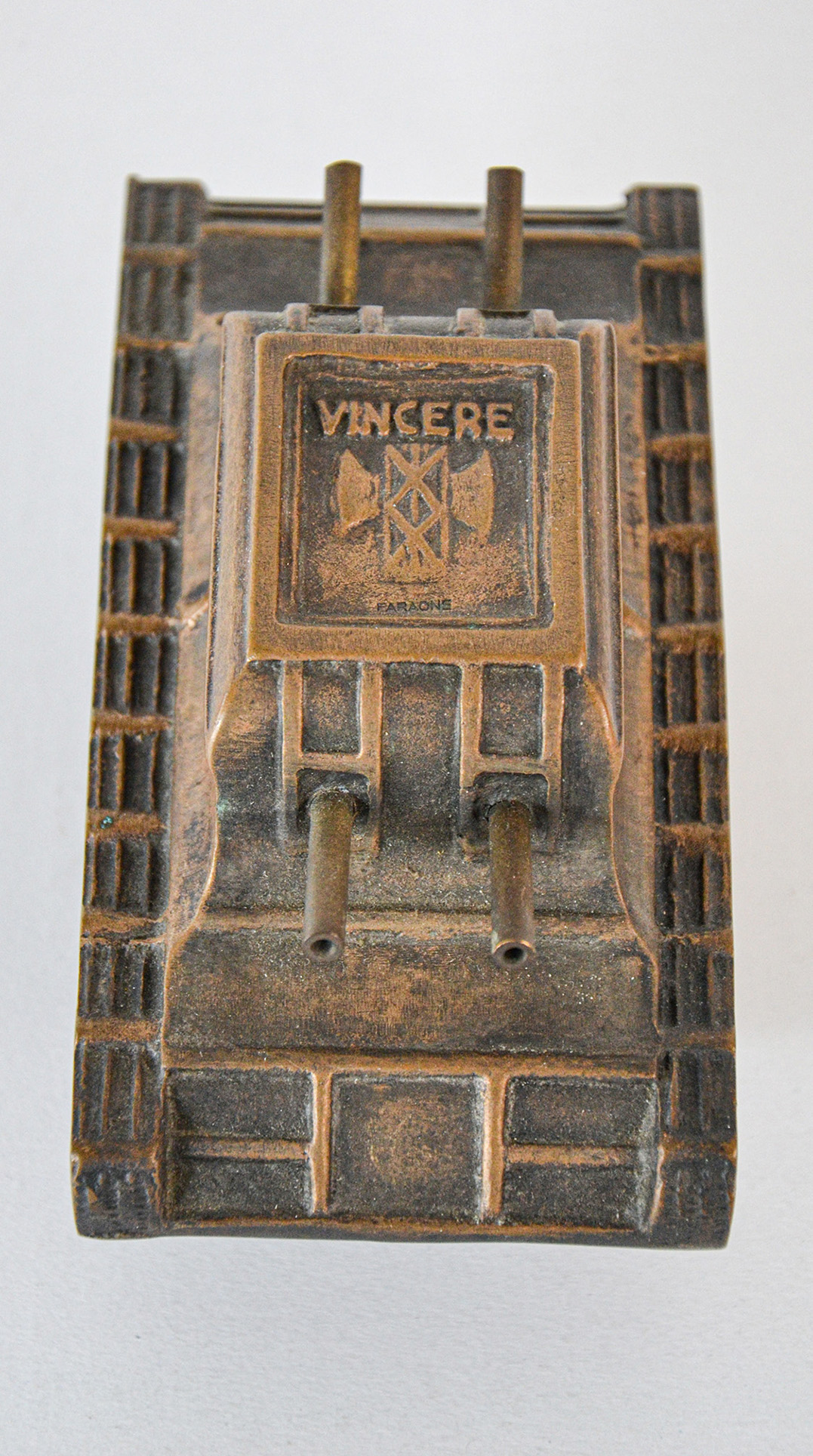 Scultura appartenente alla simbologia fascista italiana, raffigurante la miniatura in bronzo di un carro armato con fregio del fascio littorio e il motto "Vincere".