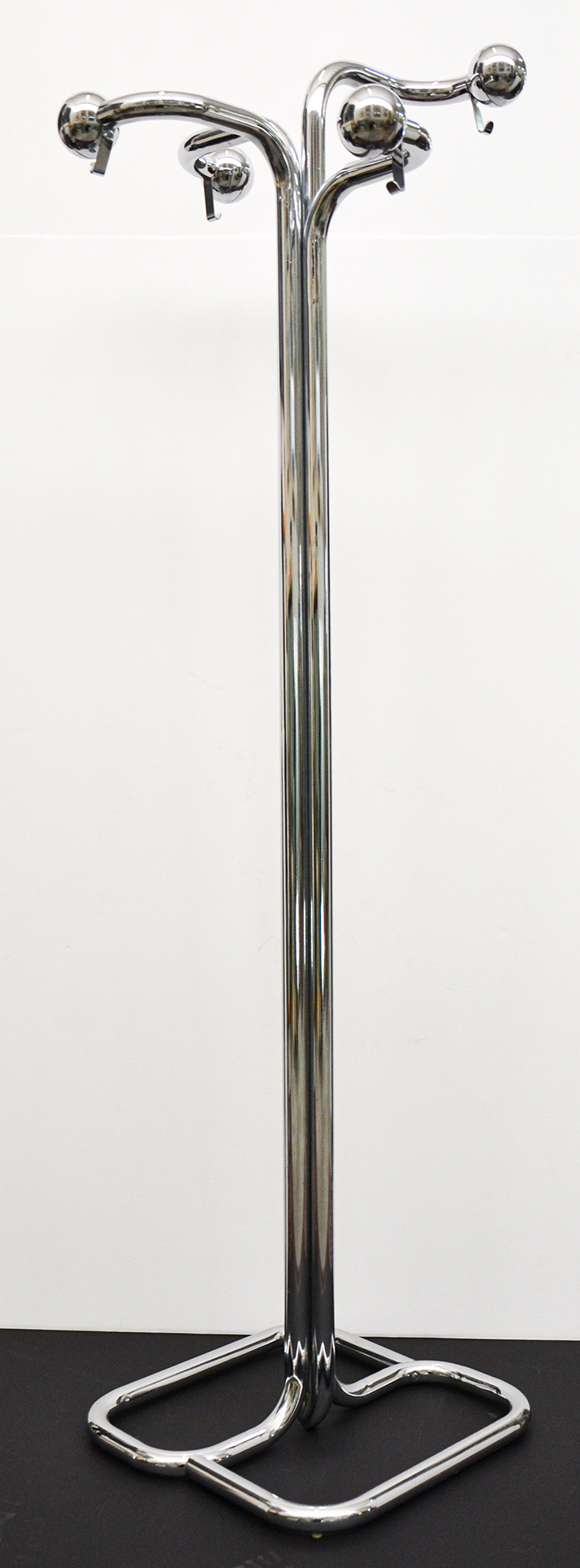 Appendiabiti con struttura e base in tubolari di acciaio cromato.
