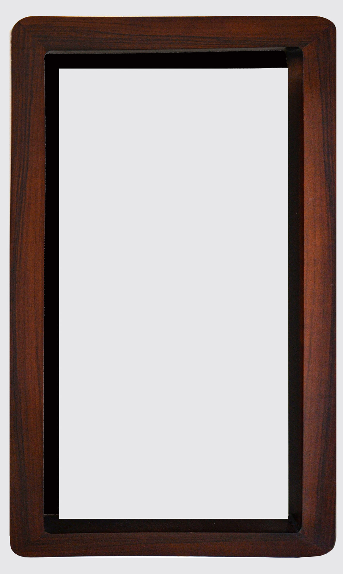 Specchio con cornice in legno color mogano ad angoli stondati, fondo ebanizzato.