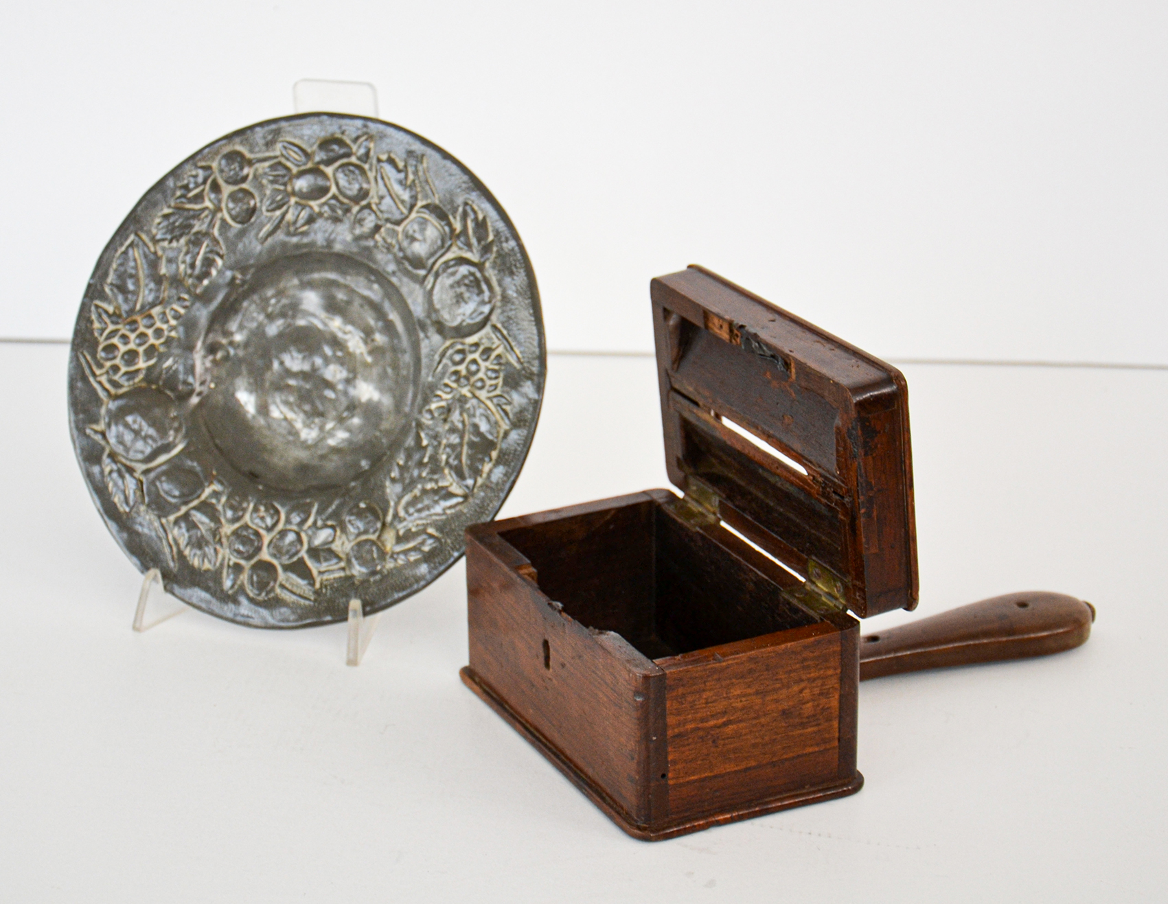 - cassetta della questua in legno di noce 1900, dimensioni: H. 9 L. 17 P. 27 cm.