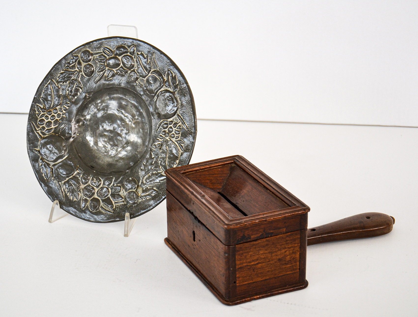 - piatto elemosiniere in peltro diametro 23 cm intarsiato a mano