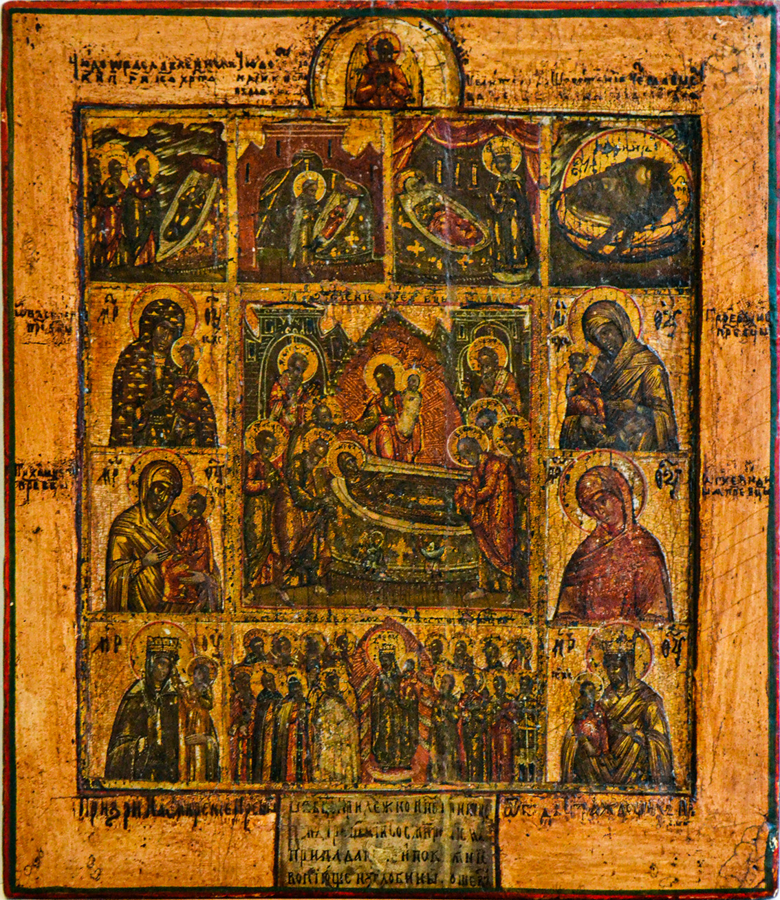 Icona russa realizzata tra l'inizio del XVI e la fine del XVIII secolo, raffigurante scene multiple di temi religiosi secondo l'antica tradizione delle chiese orientali.
