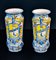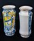 Lotto composto da n. 2 albarelli in maiolica dipinti a policromia, corpo cilindrico rastremato al centro, su base piana e basso piede espanso, collo breve.