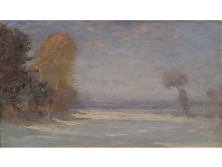 Anonimo (XX secolo) Paesaggio Olio su cartone telato Misure:23,2x41 cm