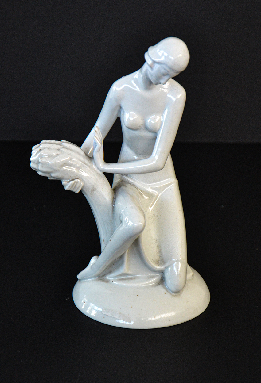 Figura femminile in ceramica smaltata bianca in stile Art Decò.