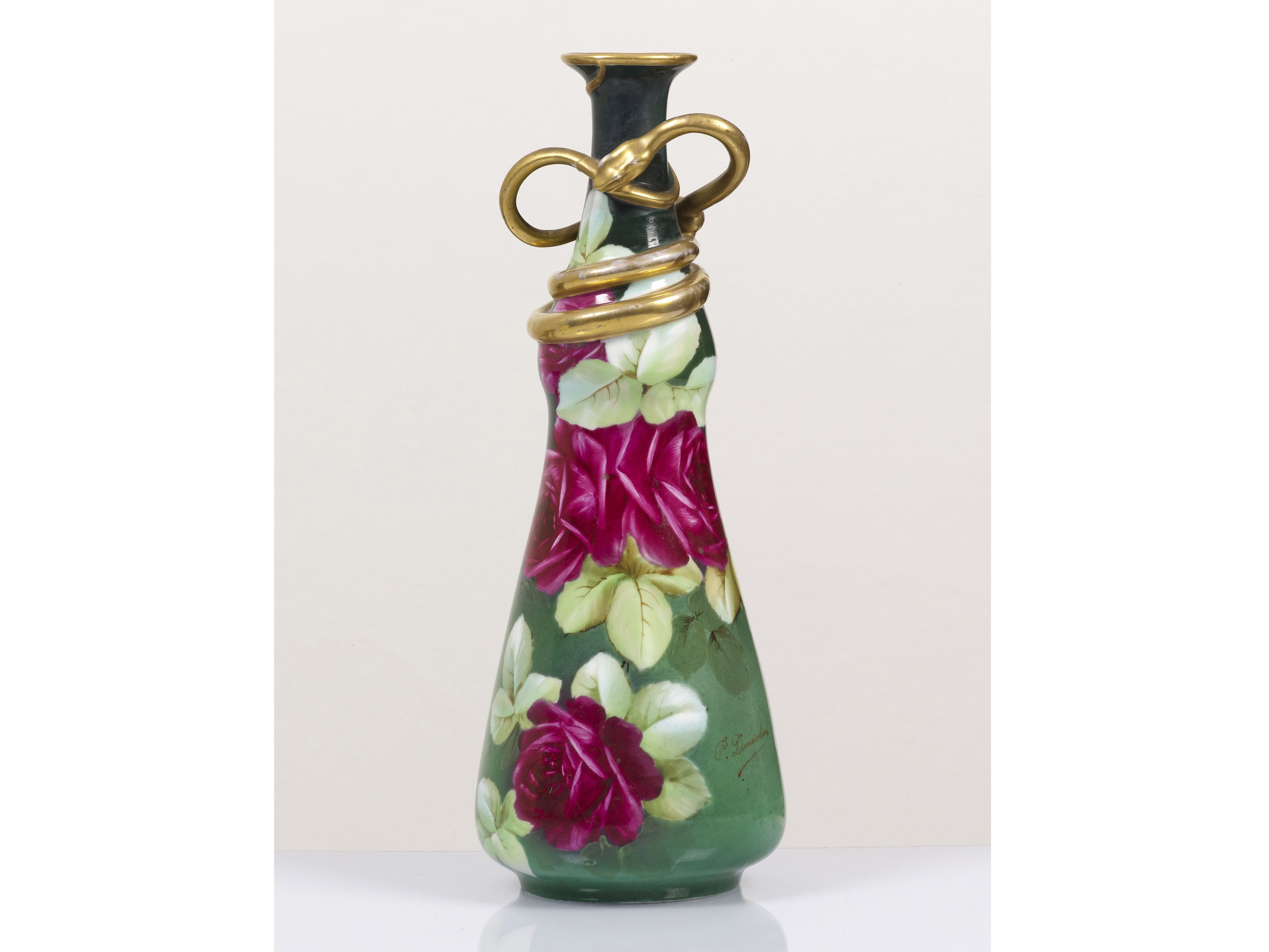 P.Doncirbari per Ginori (XX secolo) Vaso Lieve riparazione al manico Altezza 29 cm Vaso opera dei Pittori dei Fiori (che identificava il trio costituito da P. Donnini, Cirri e Bari)