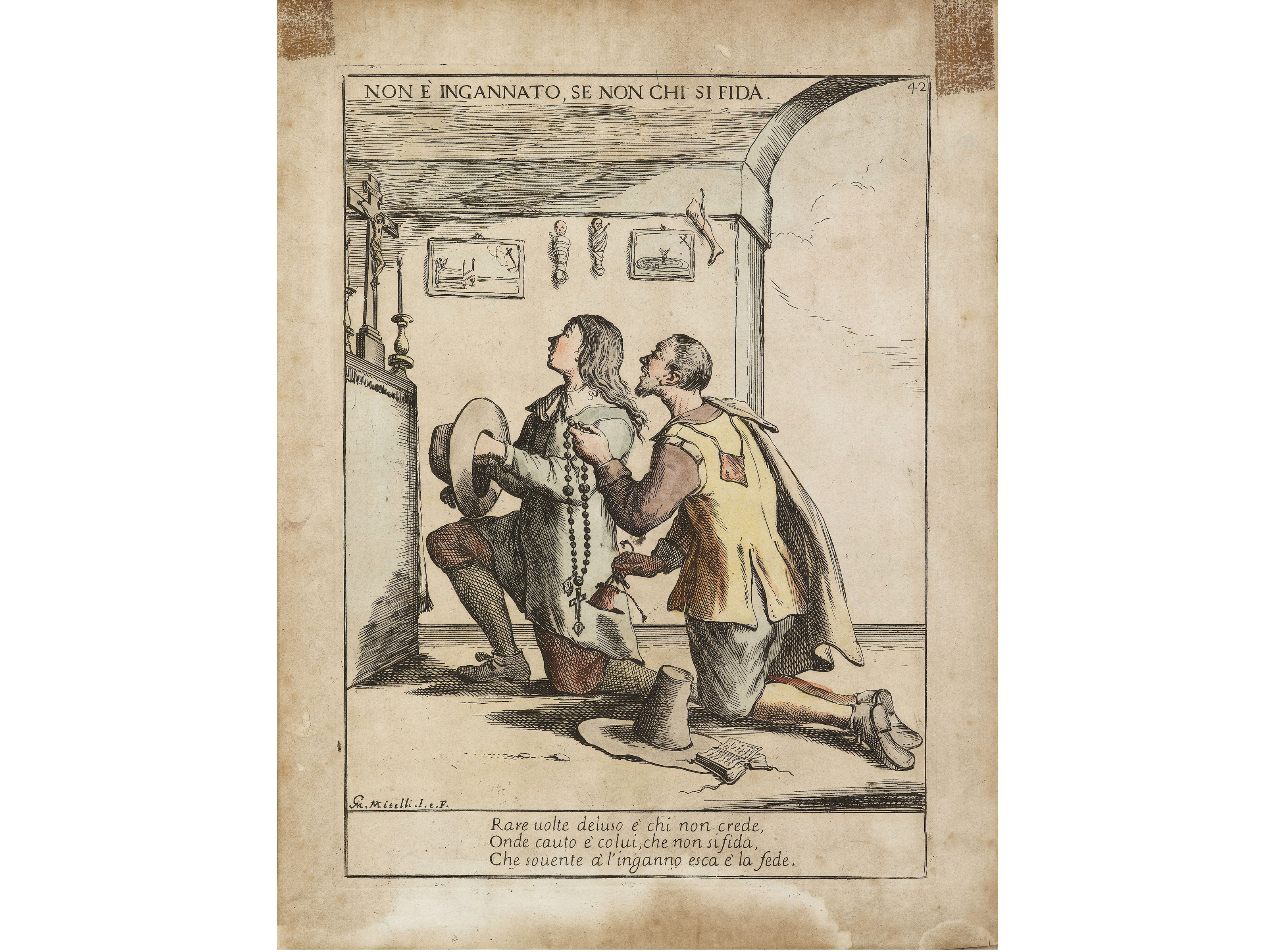 Giuseppe Maria Mitelli (1634-1718) Stampa colorata Senza cornice Misure 31,7x23,9 cm