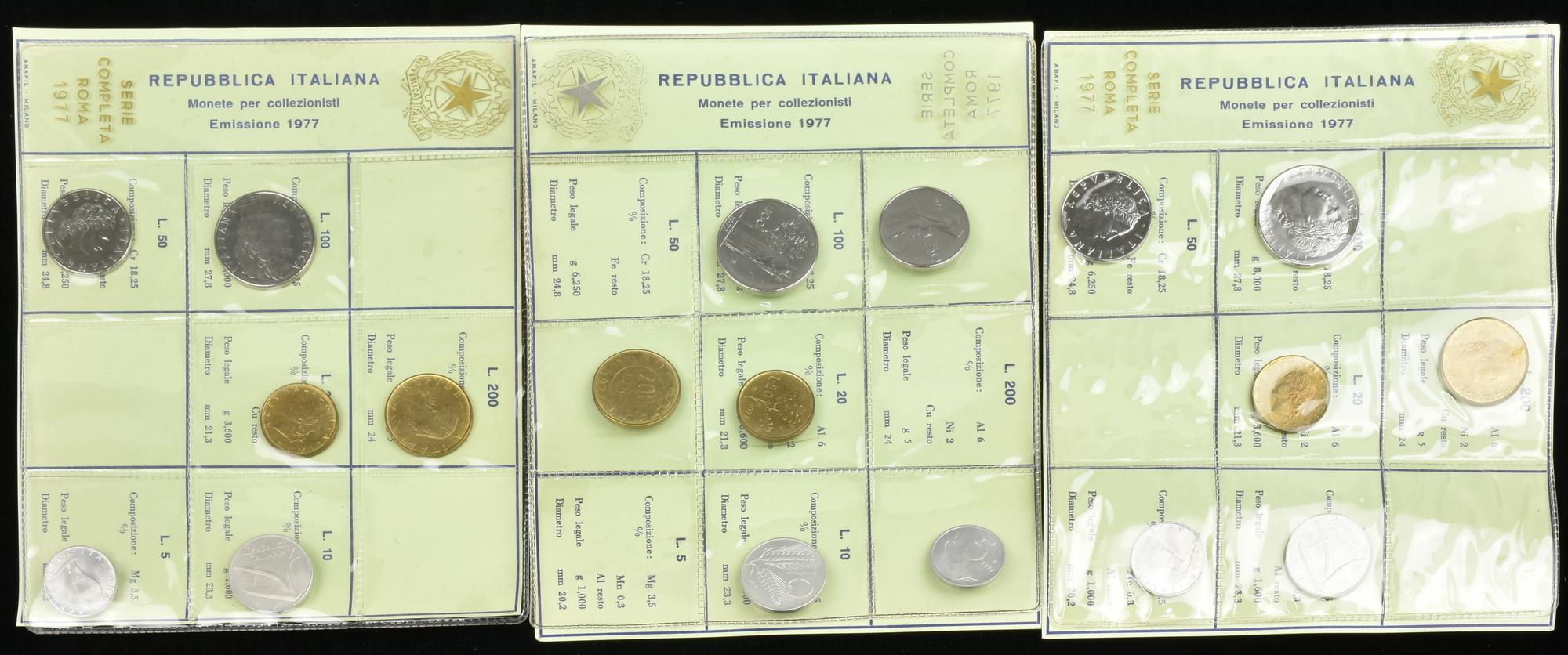 LOTTO DI MONETE composto da 3 blister contenenti 6 monete del 1977 ciascuno:...