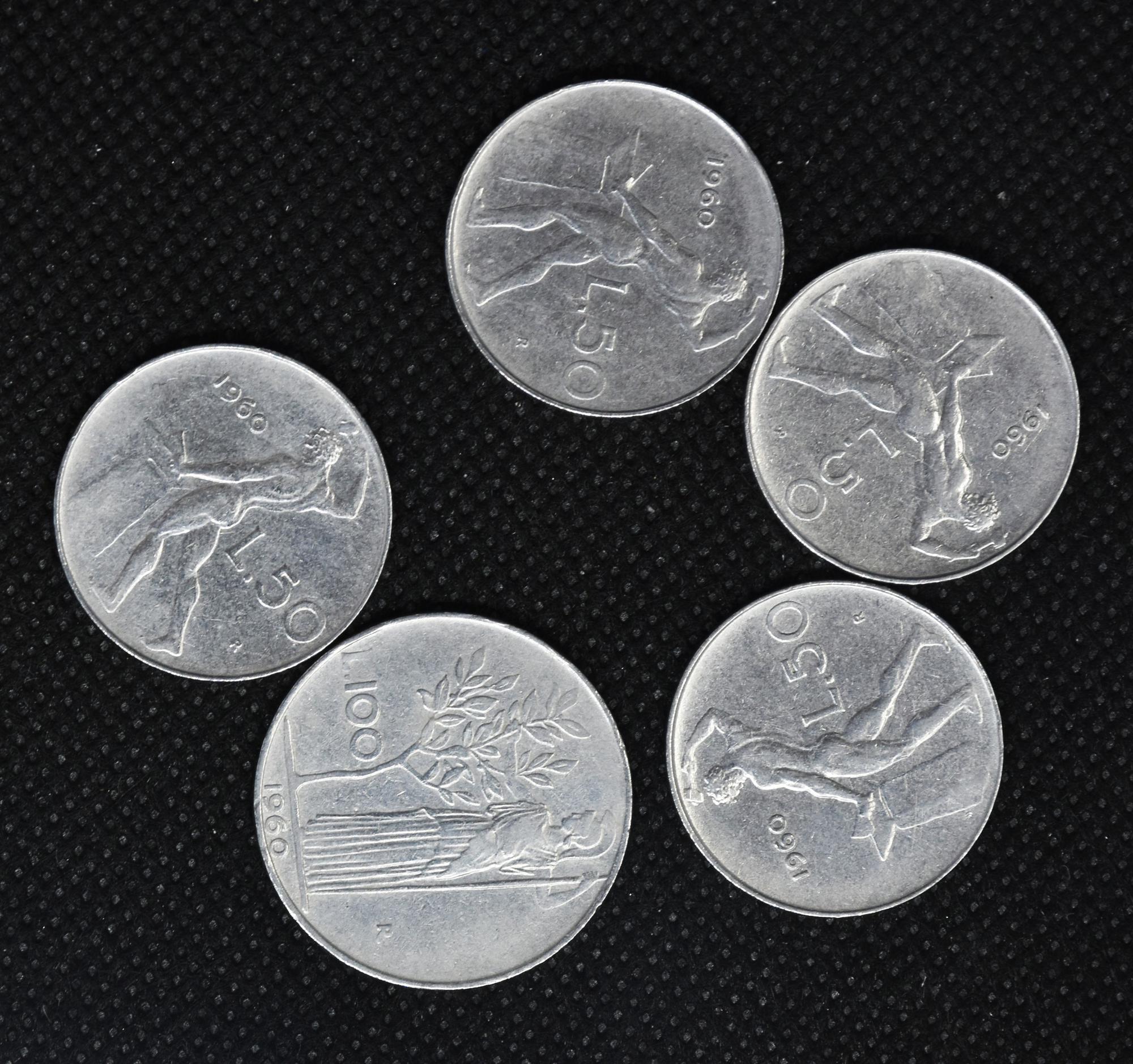 Lotto 166 | LOTTO DI 5 MONETE REPUBBLICA ITALIANA - 50 lire 1960 - 50 lire 1960 - 50 lire...
