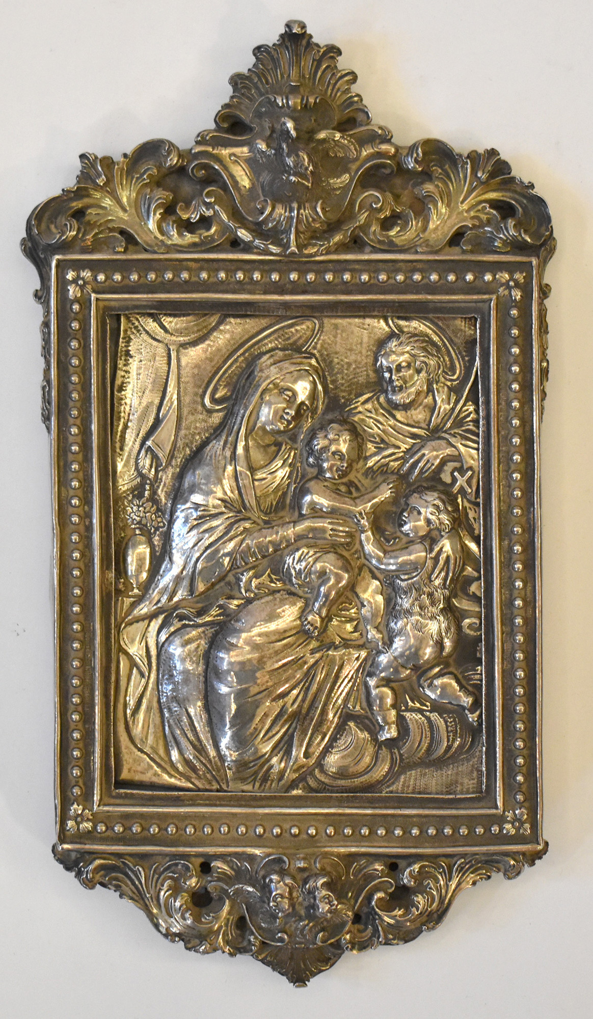 Precedente Lotto 0073 Successivo Casa d'Aste Martini - C.so Cavallotti 76, 18038 Sanremo Asta 82 Sessione unica giovedì 23 marzo 2023 ore 15:00 (UTC +01:00) ARGENTI placca in argento sbalzato 'Sacra famiglia con San Giovannino' sec.XVII24 5x14 cm