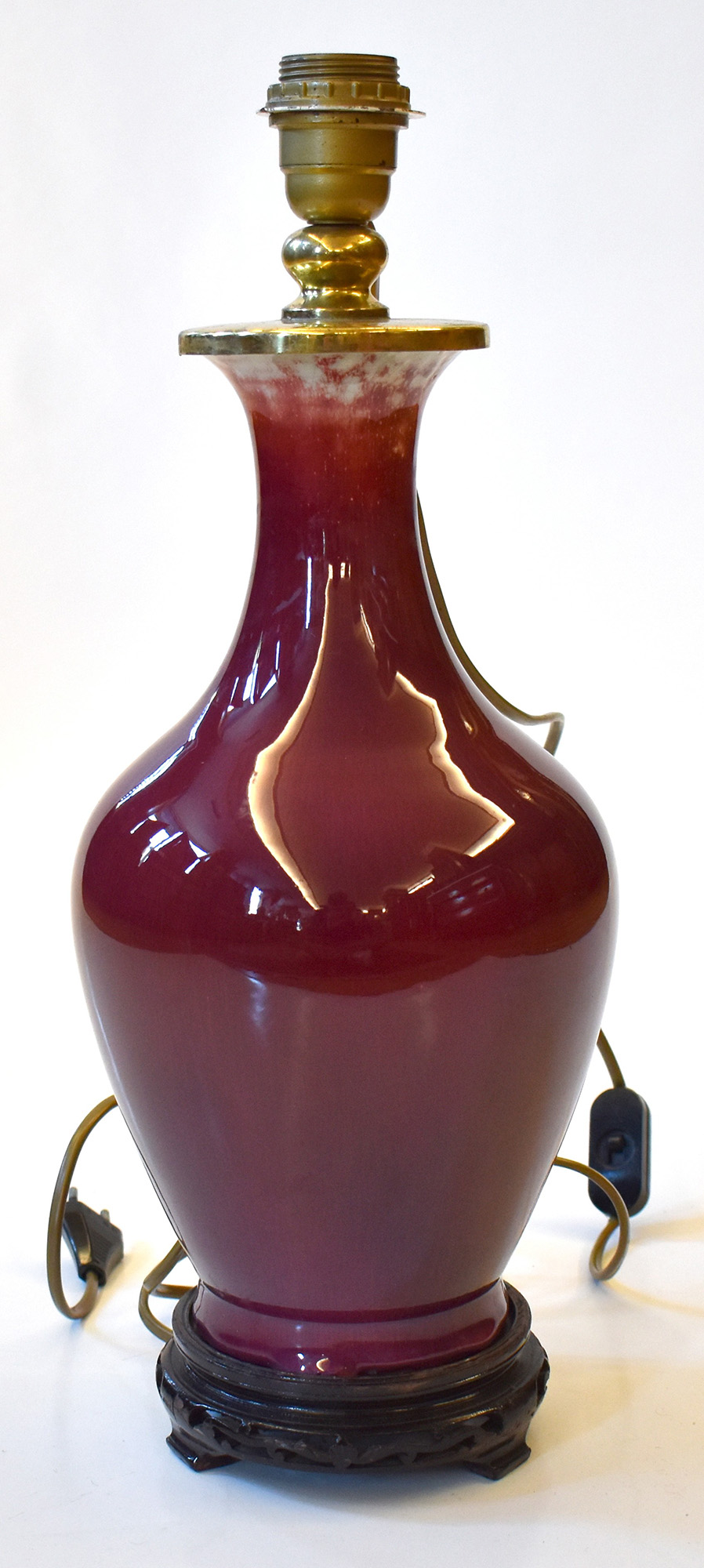Cina vaso in porcellana montato a lume base in legno e attacco lampada incollati