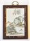 Cina placca in porcellana dipinta a paesaggio con scritte in cornice di legno