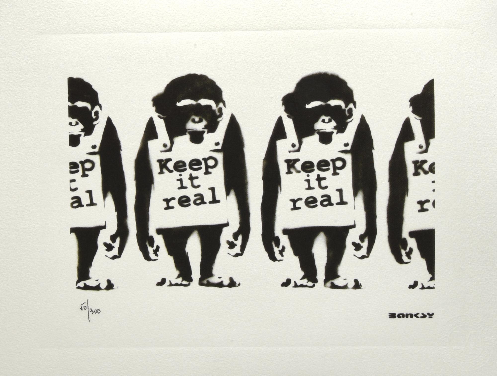 Da Banksy KEEP IT REAL eliografia, cm 28,5x38; es. 50/300 firma in lastra,...