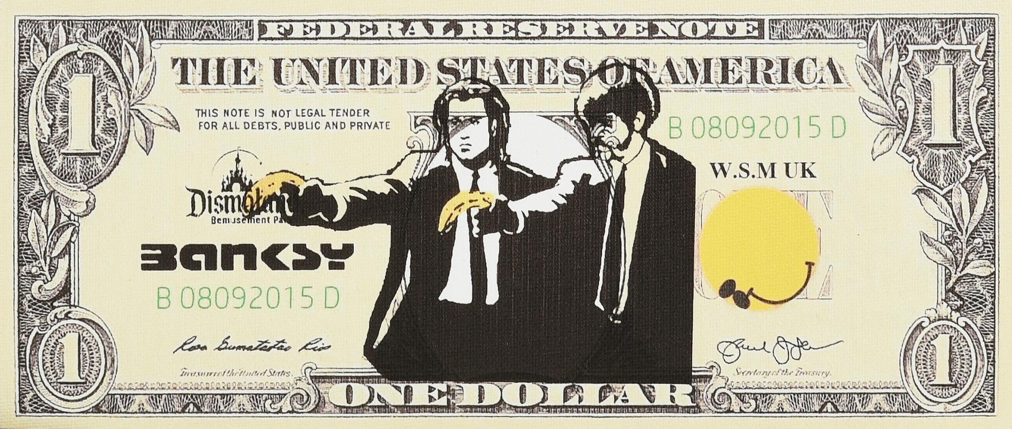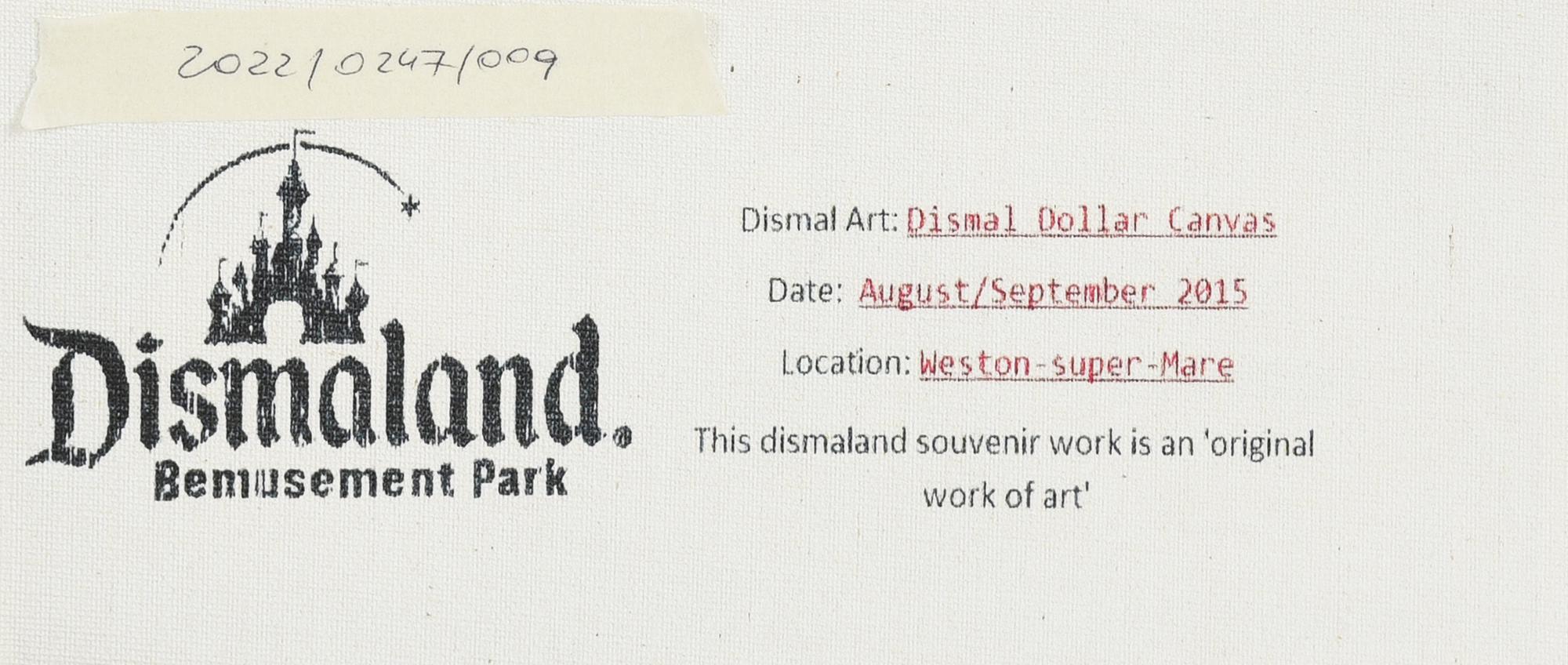 Da Banksy DISMAL DOLLAR CANVAS serigrafia e stencil su tela, cm 11,5x26,5...