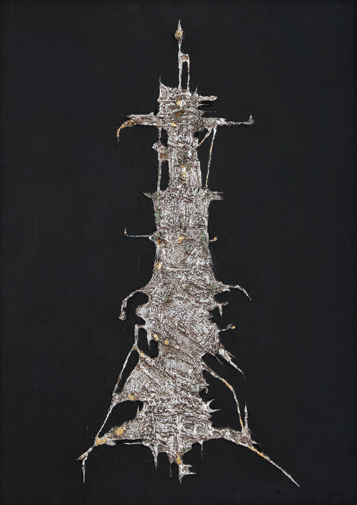 ELIO MARCHEGIANI Siracusa 02/09/1929 Totem, 1962 tecnica mista su cartone cm. 70x50, firma, titolo, anno e dichiarazione d'autenticità dell'artista al retro.