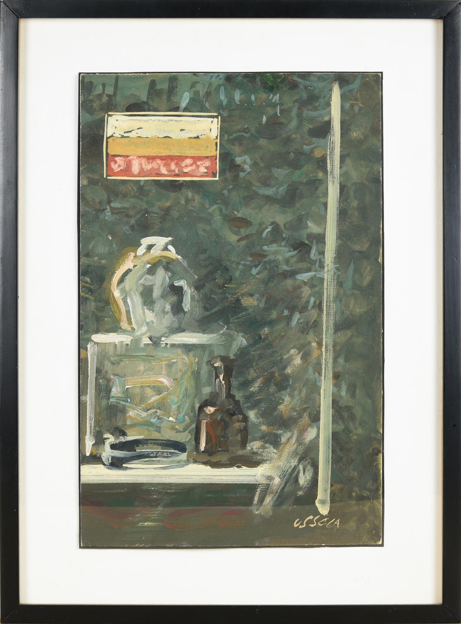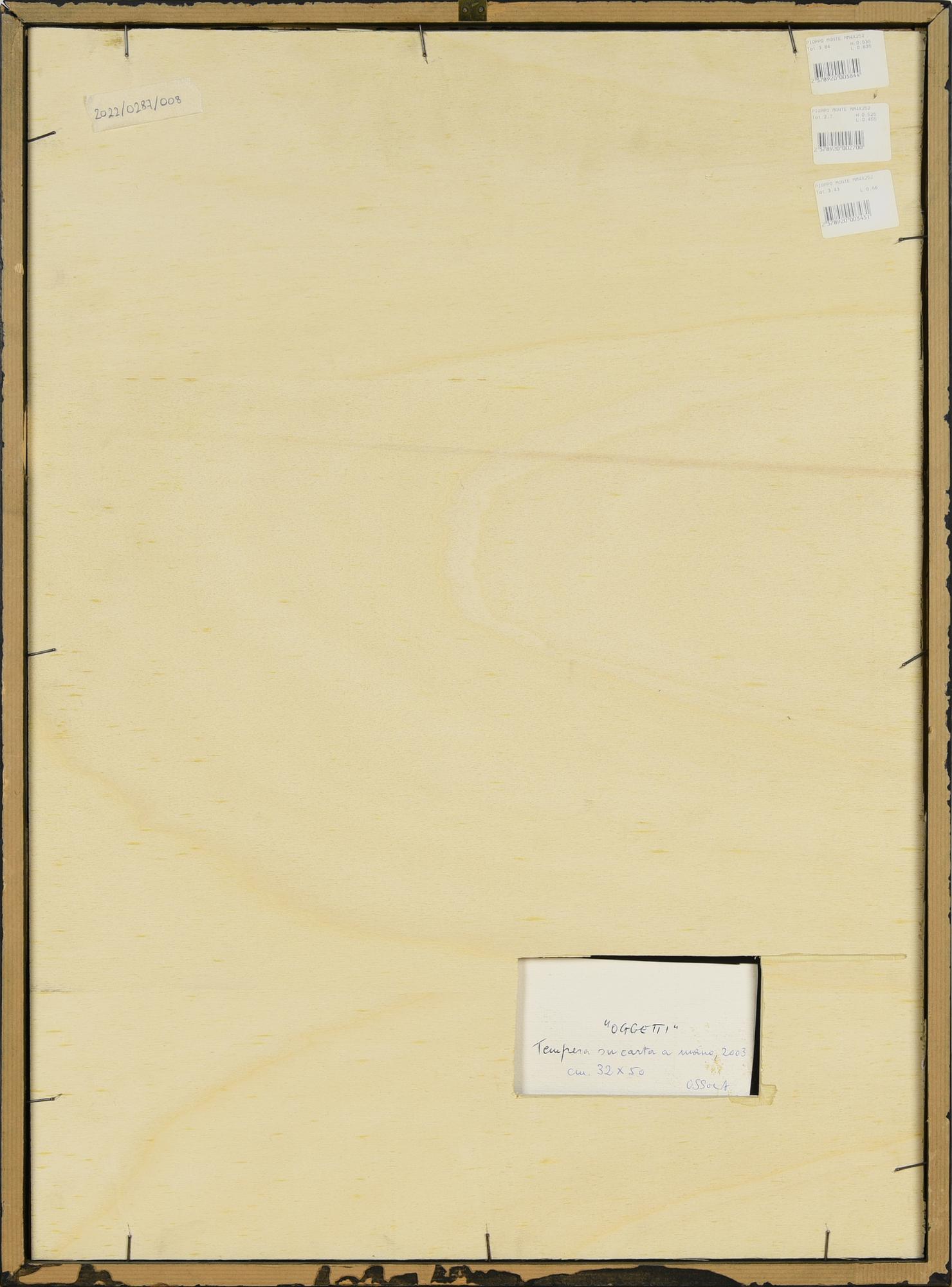 Giancarlo Ossola OGGETTI tempera su carta a mano, cm 50x32 firma sul retro:...