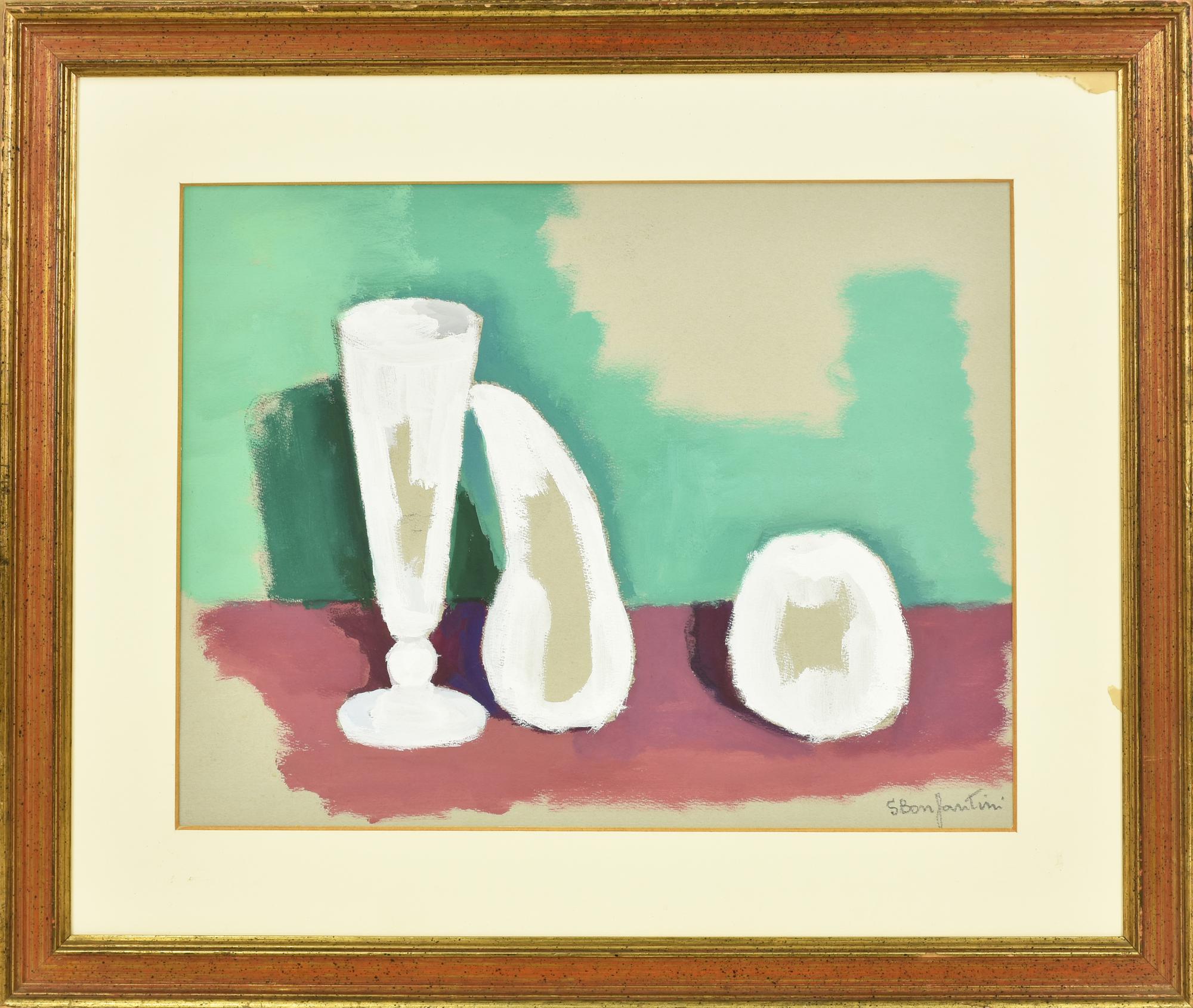 Sergio Bonfantini NATURA MORTA tempera su carta, cm 33,7x44 firma