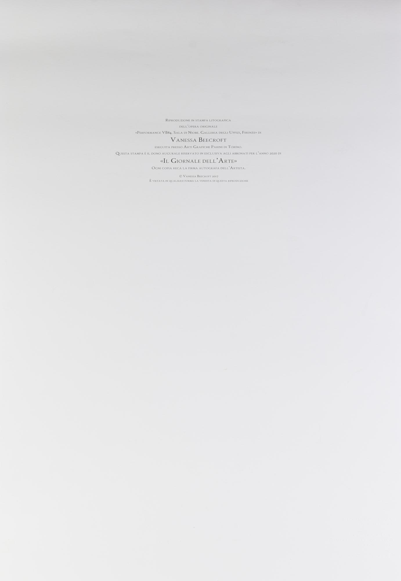 Riproduzione in stampa litografica realizzata dal Giornale dell'Arte della performance realizzata nel 2017 da Vanessa Beecroft presso la Galleria degli Uffizi nell'ambito del Firenze Suona Contemporanea