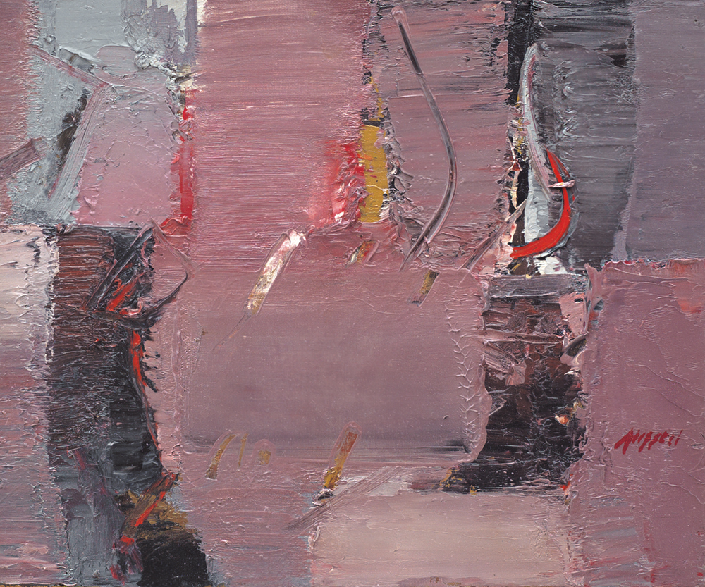 PIERO RUGGERI Torino 27/04/1930 - 14/05/2009 Natura morta, 1981 olio su tela cm. 25x30, firma in basso a destra, titolo, firma, anno e tecnica al retro, dichiarazione d'autenticità e archivio della "Fondazione Piero Ruggeri" su foto.