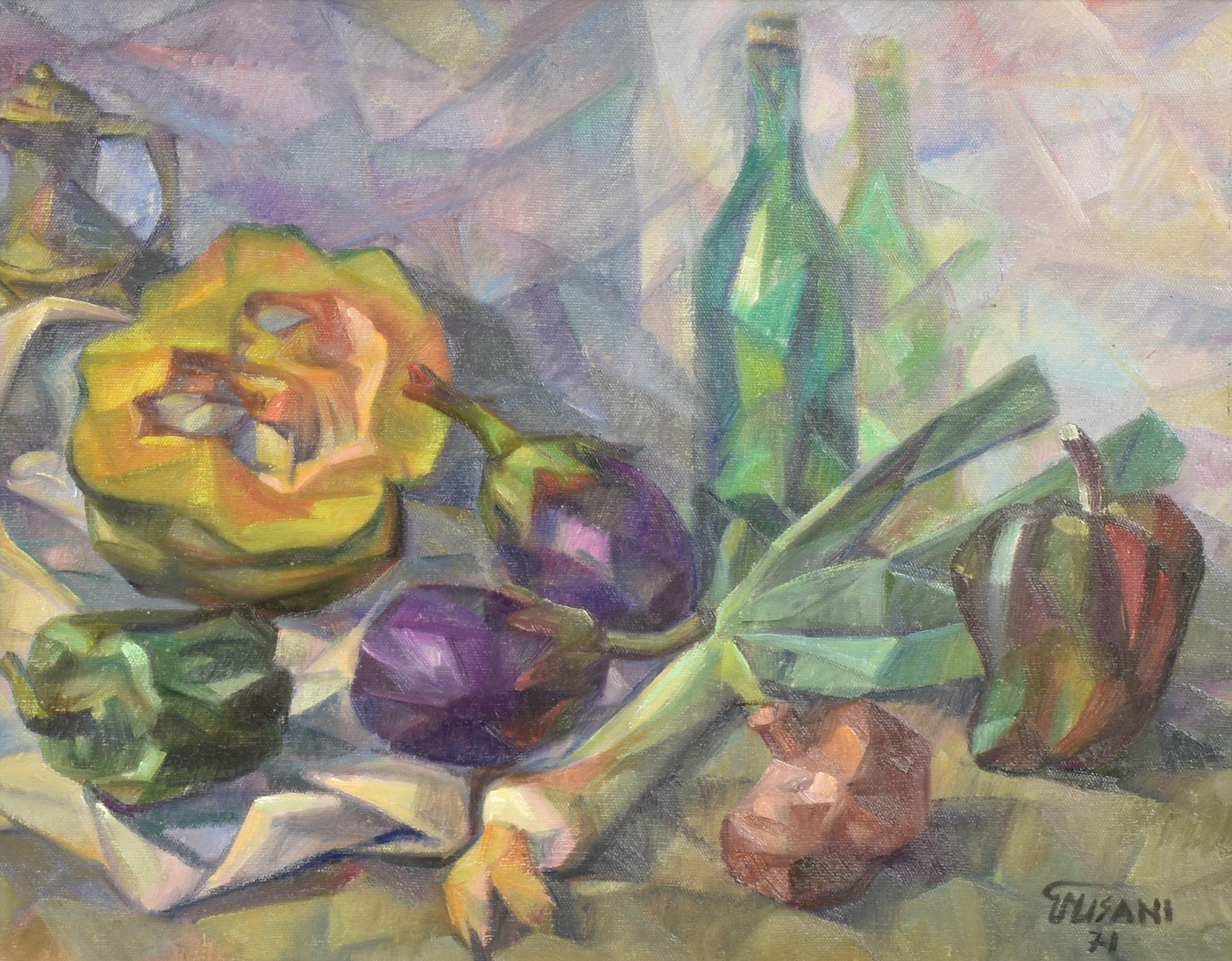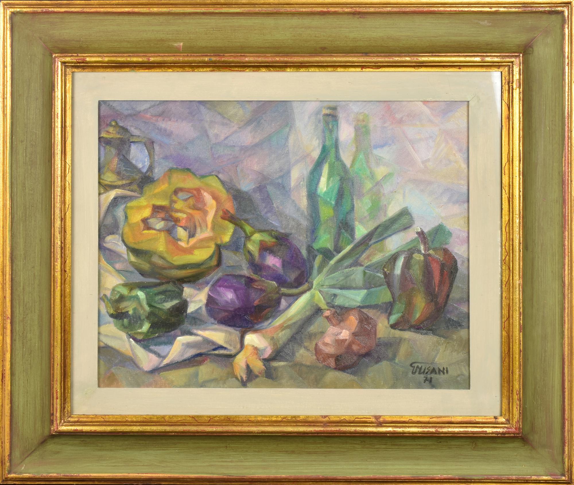 Giovanni Misani NATURA MORTA CON BOTTIGLIA olio su tela, cm 64x74 firma e...