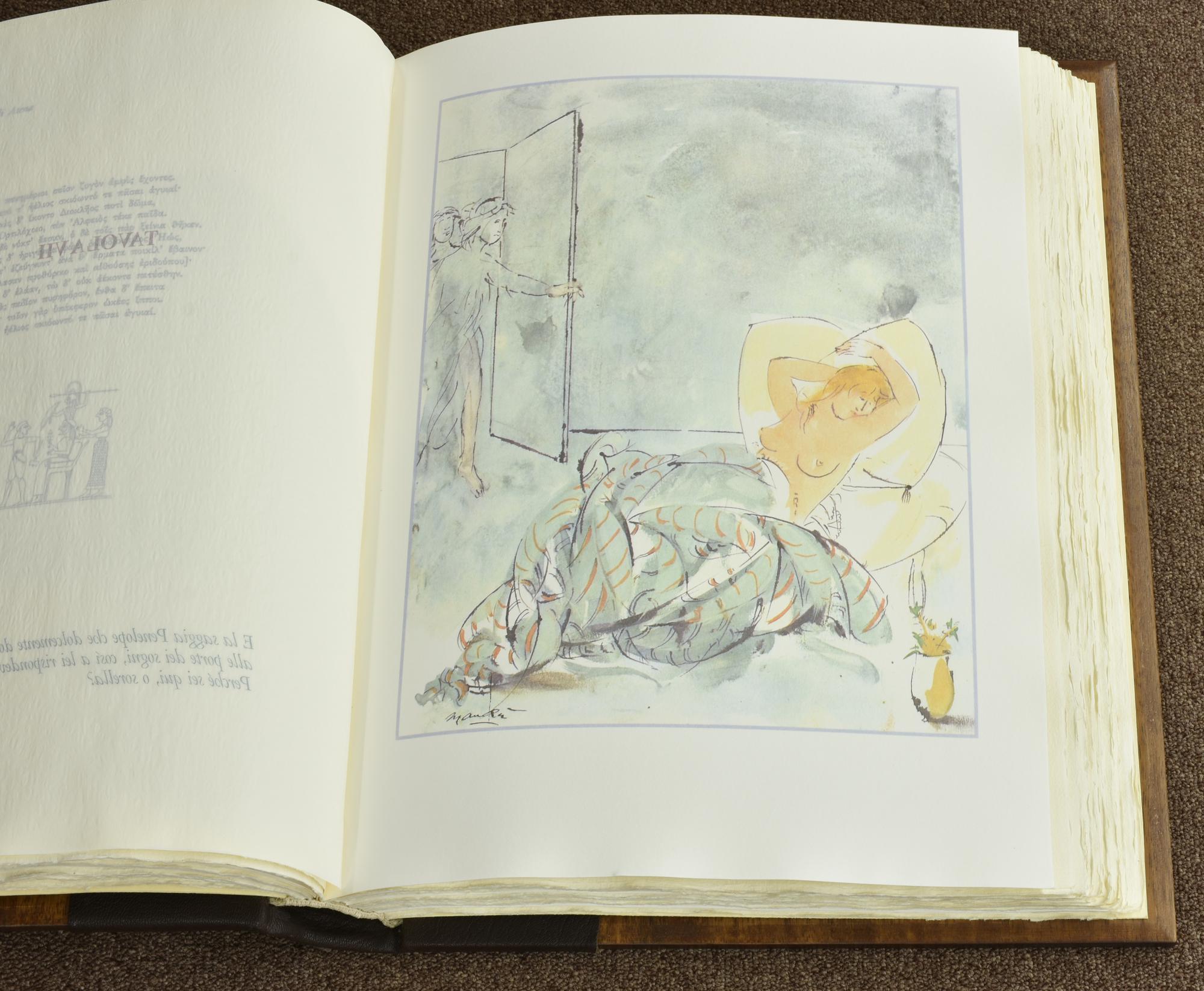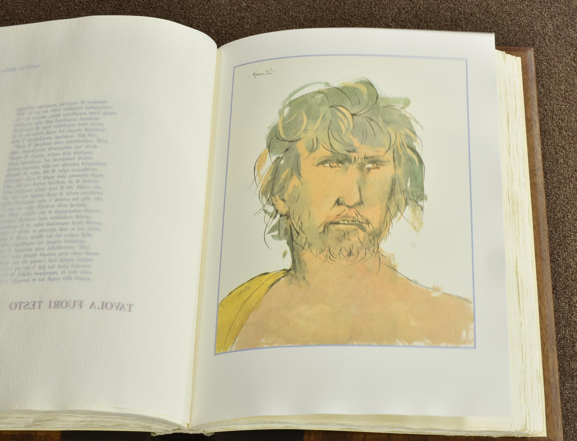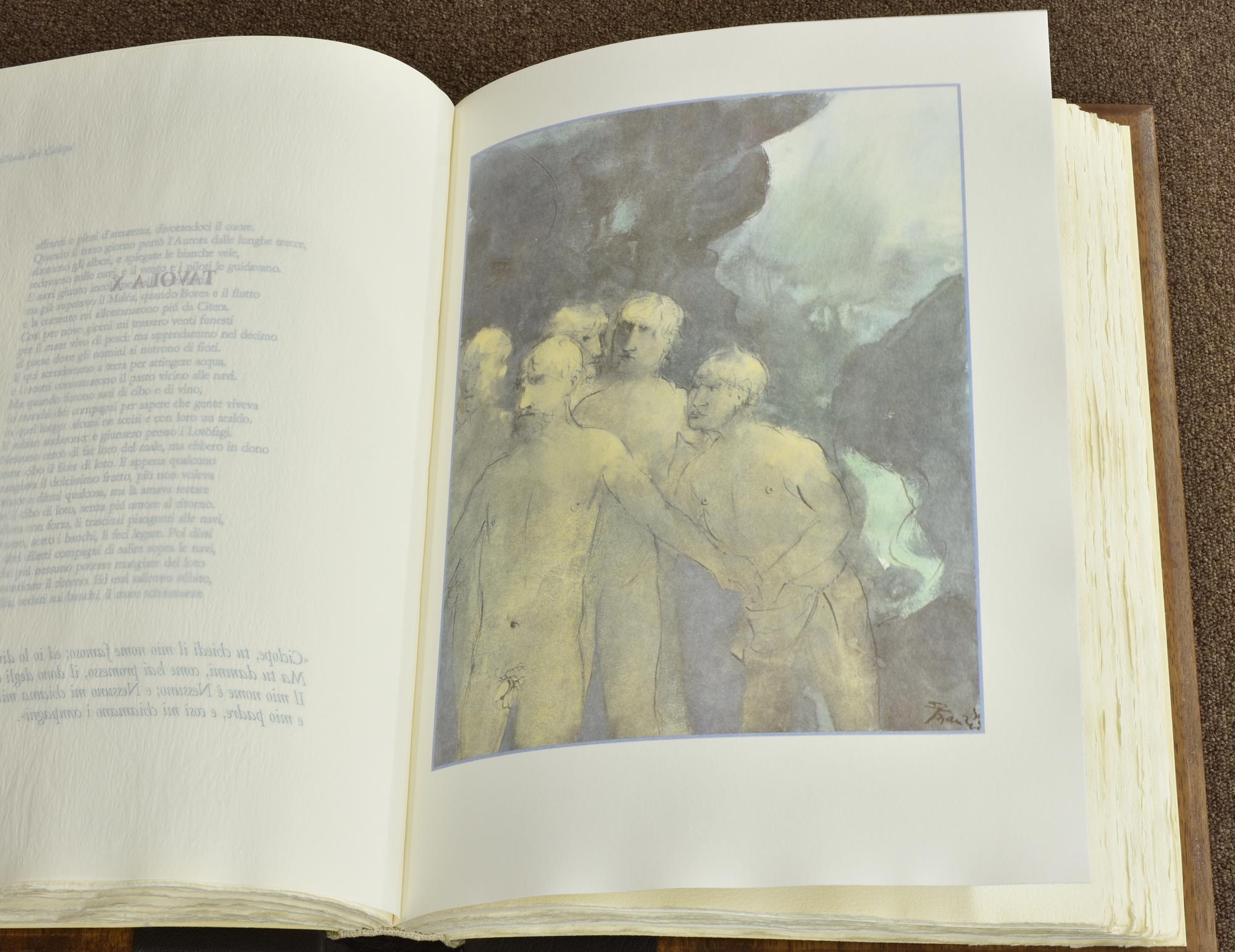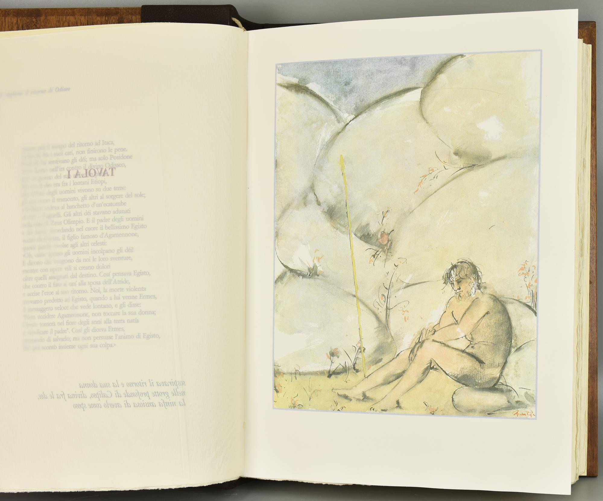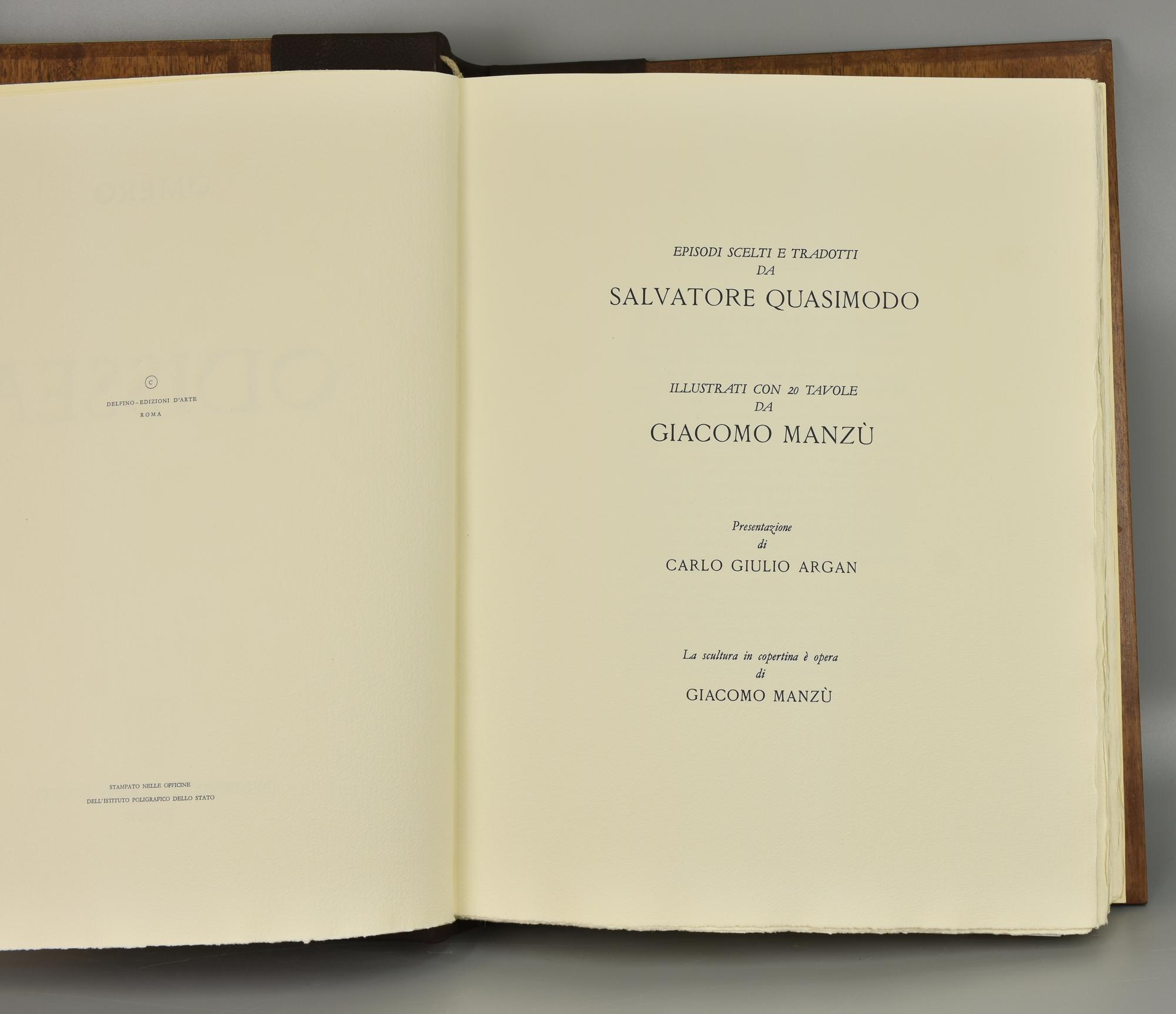 20 riproduzioni fotolitografiche delle tavole originali dell'edizione dell'Odissea illustrata da Giacomo Manzu' con le traduzioni di Salvatore Quasimodo. Bassorilievo in bronzo sulla copertina.