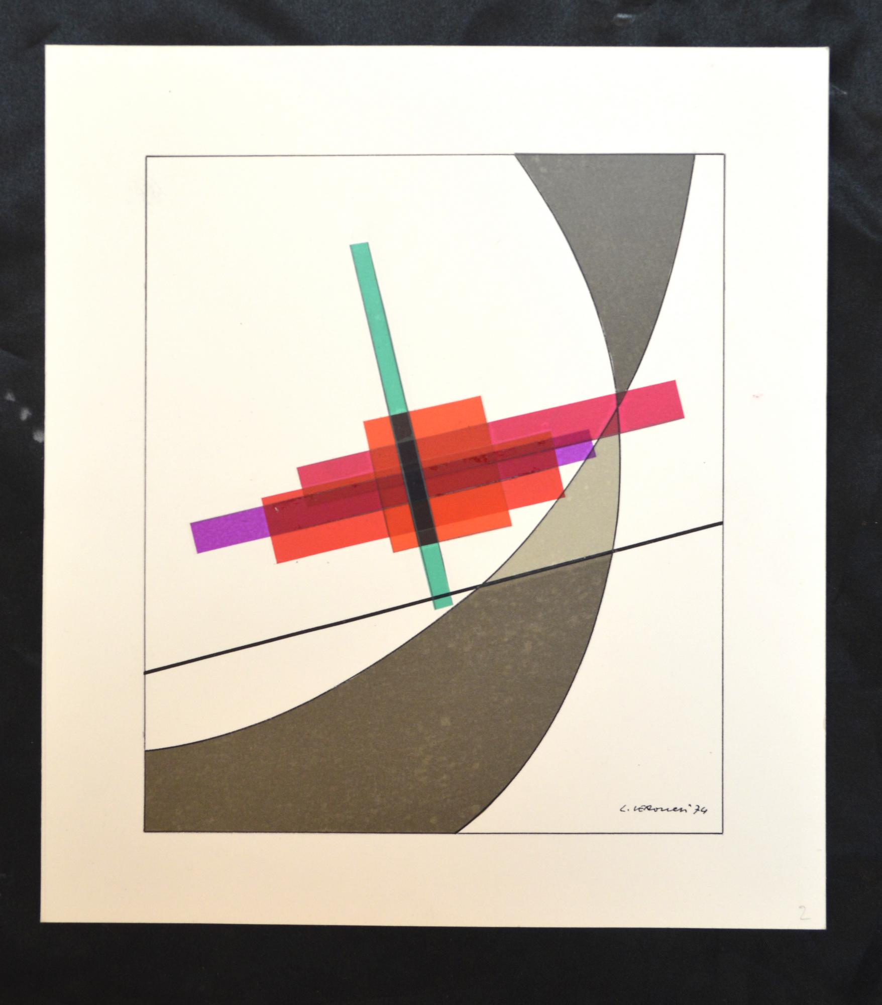 Luigi Veronesi COMPOSIZIONE tempera, china e collage su carta, cm 26x23 firma...