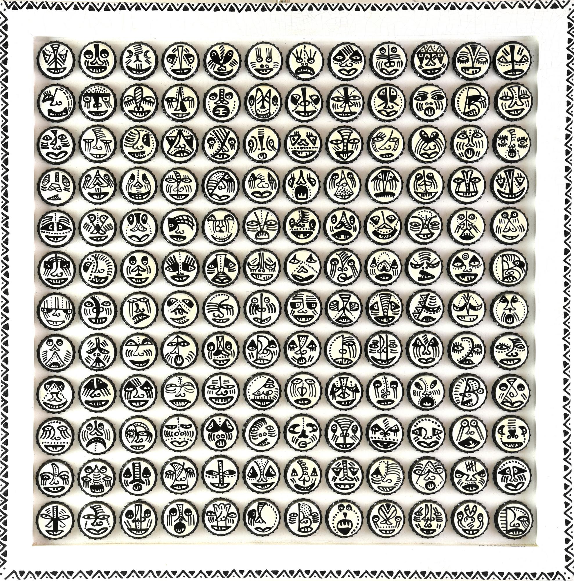 Margaret Majo TRADITIONAL MASKS tecnica mista, collage e acrilico, cm 47x47...