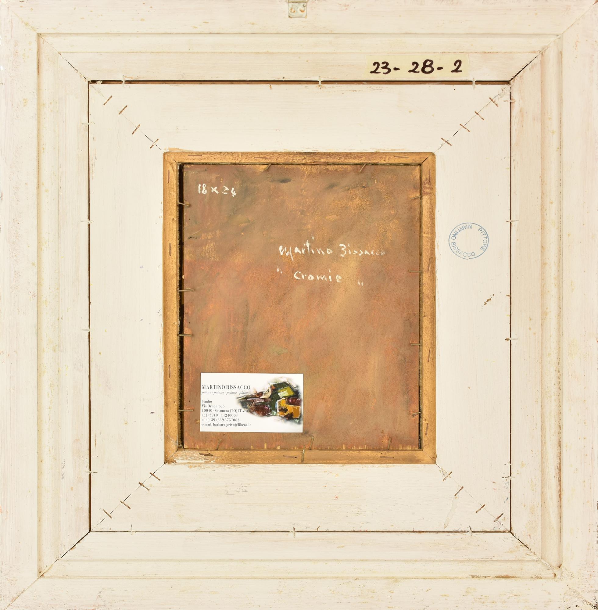 Martino Bissacco CROMIE olio su tavola, cm 24x18 firma sul retro: firma e...