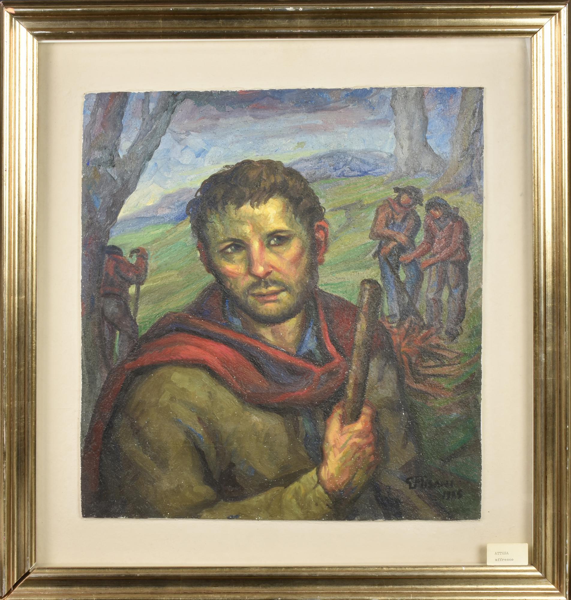 Giovanni Misani ATTESA affresco, cm 67x62 firma e data sul retro: etichetta...