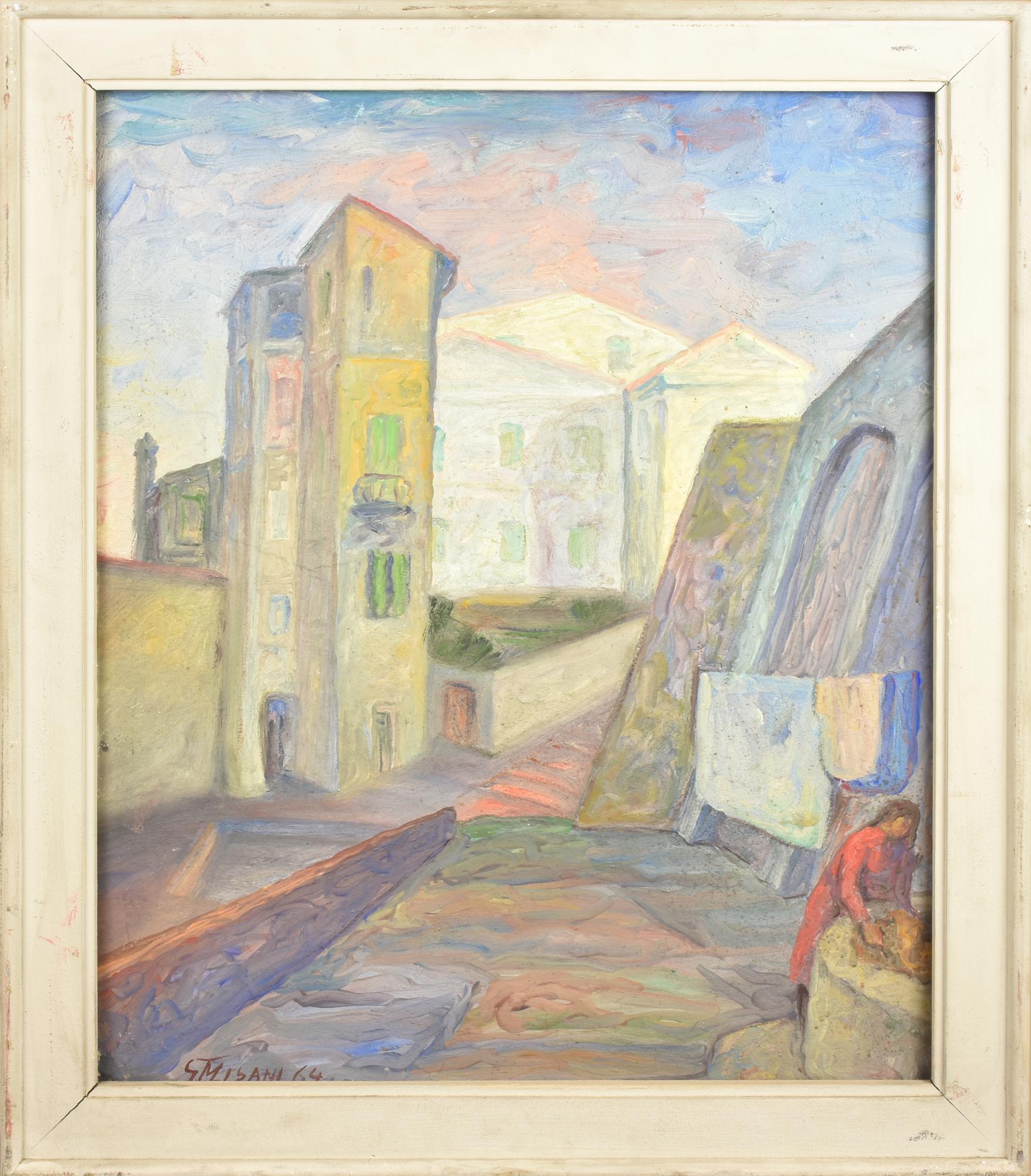 Giovanni Misani LAVANDAIA affresco, cm 68x58 firma e data eseguito nel 1964